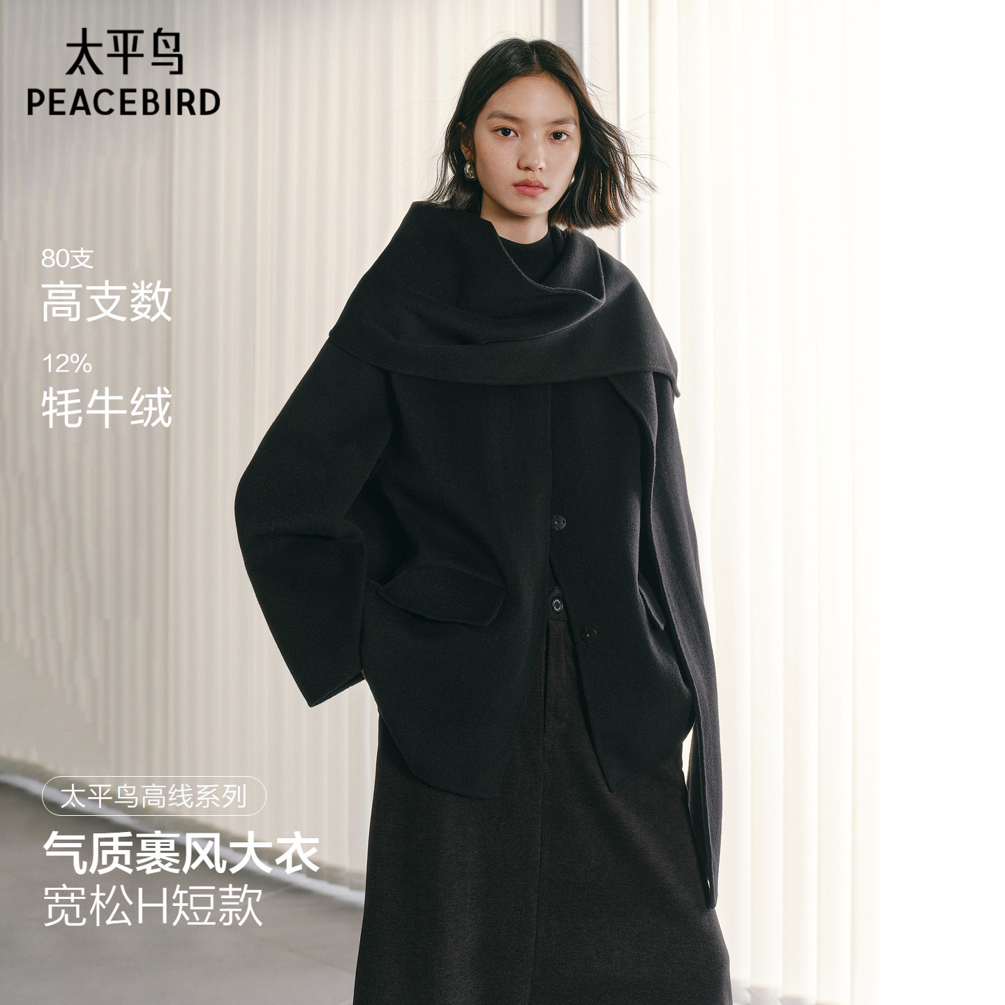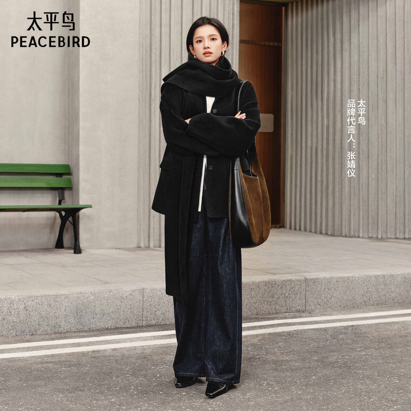 【张婧仪同款】太平鸟商场甄绒系列裹风大衣双面呢短款A1AAF4247