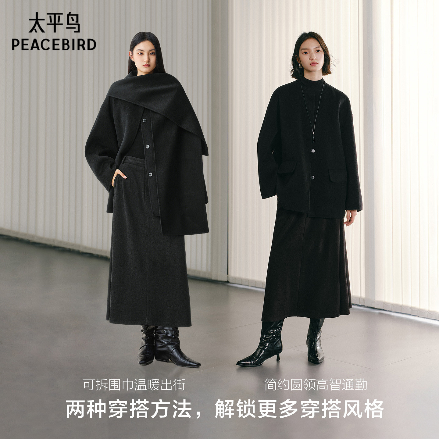 BXV斗篷双面羊绒大衣女披风2025春秋季小个子澳毛英伦羊毛呢外套