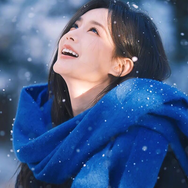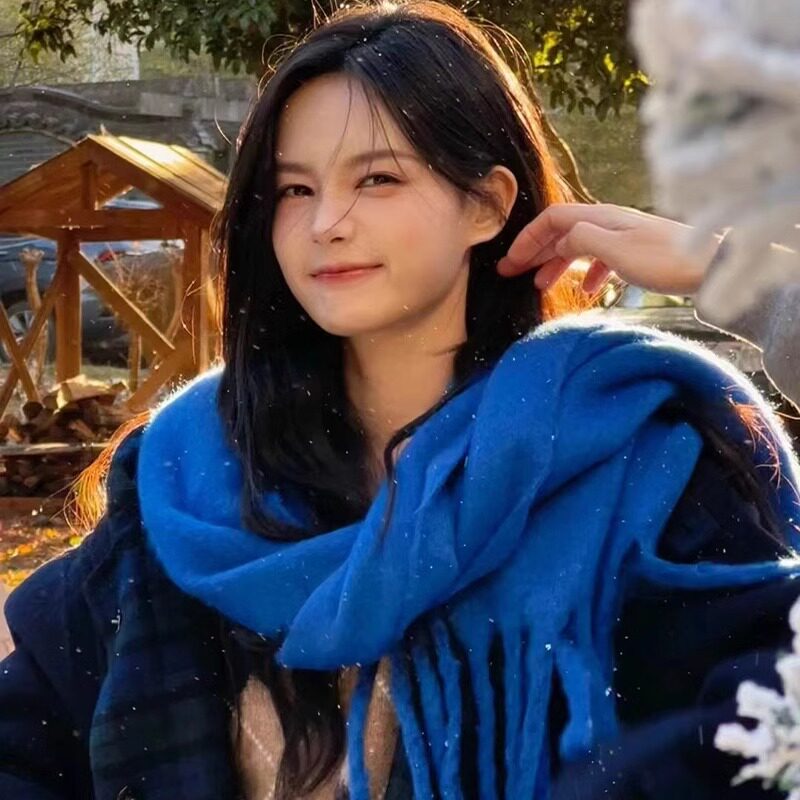 李一桐同款克莱因蓝围巾女款冬季2025秋冬氛围感蓝色羊绒围脖白色