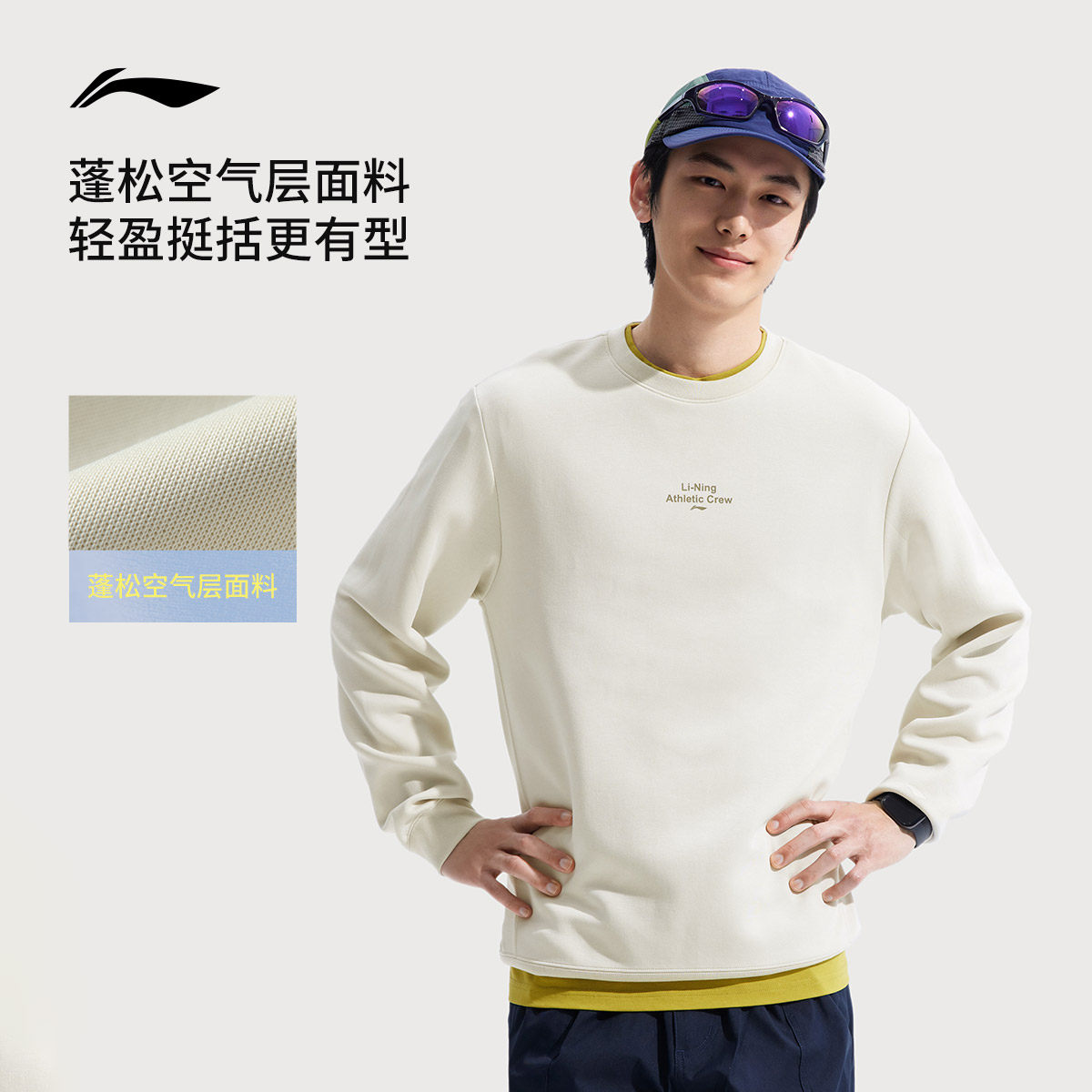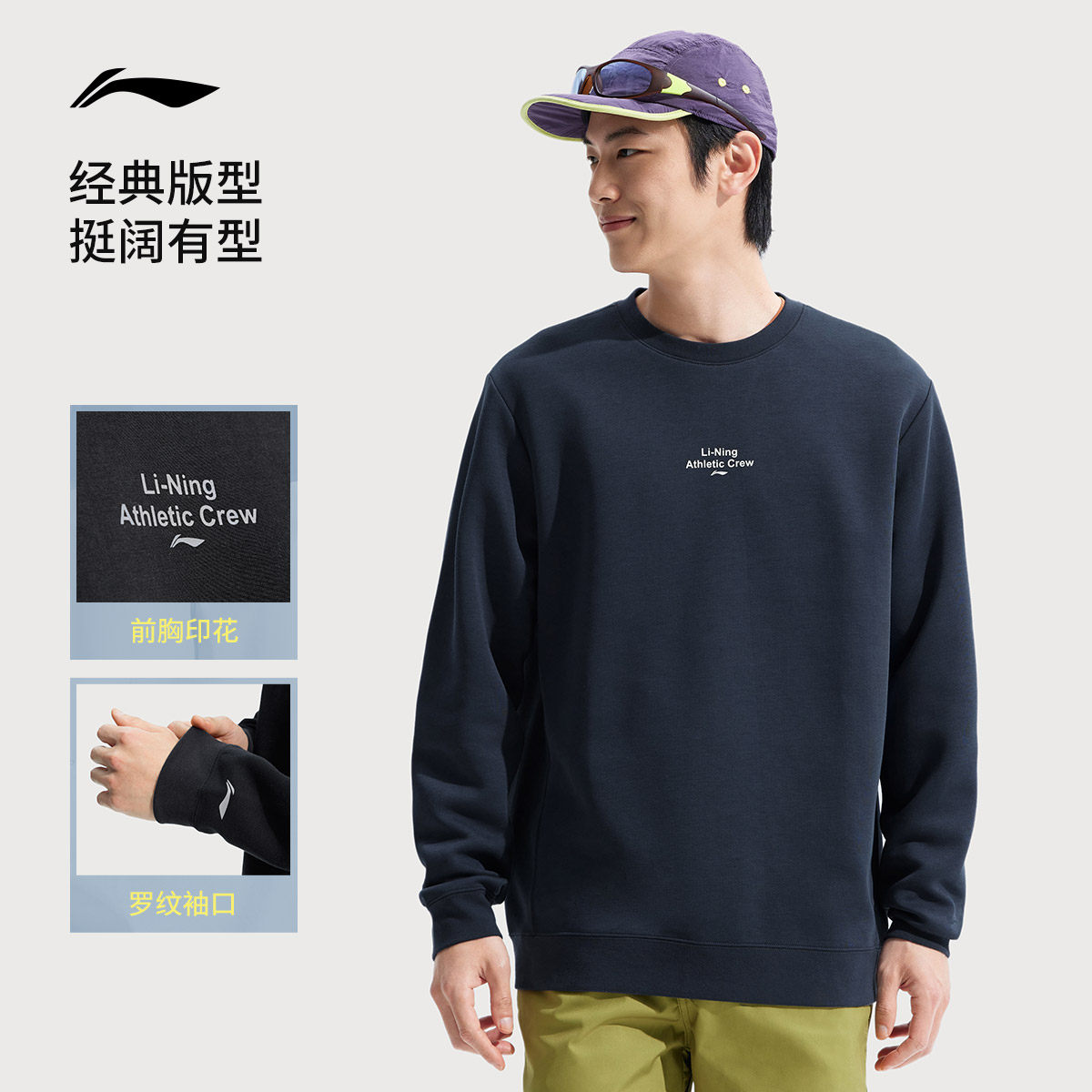 李宁卫衣男士春季官方健身跑步男装套头衫长袖圆领卫衣针织运动服