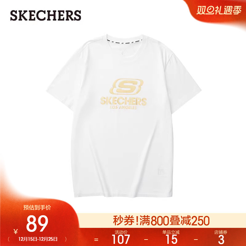 Skechers斯凯奇男女同款夏季针织圆领舒适百搭简约全棉短袖T恤衫