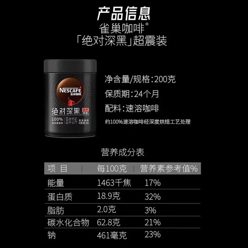 Nestle雀巢咖啡绝对深黑深度烘焙冰美式速溶咖啡粉铁罐装200g