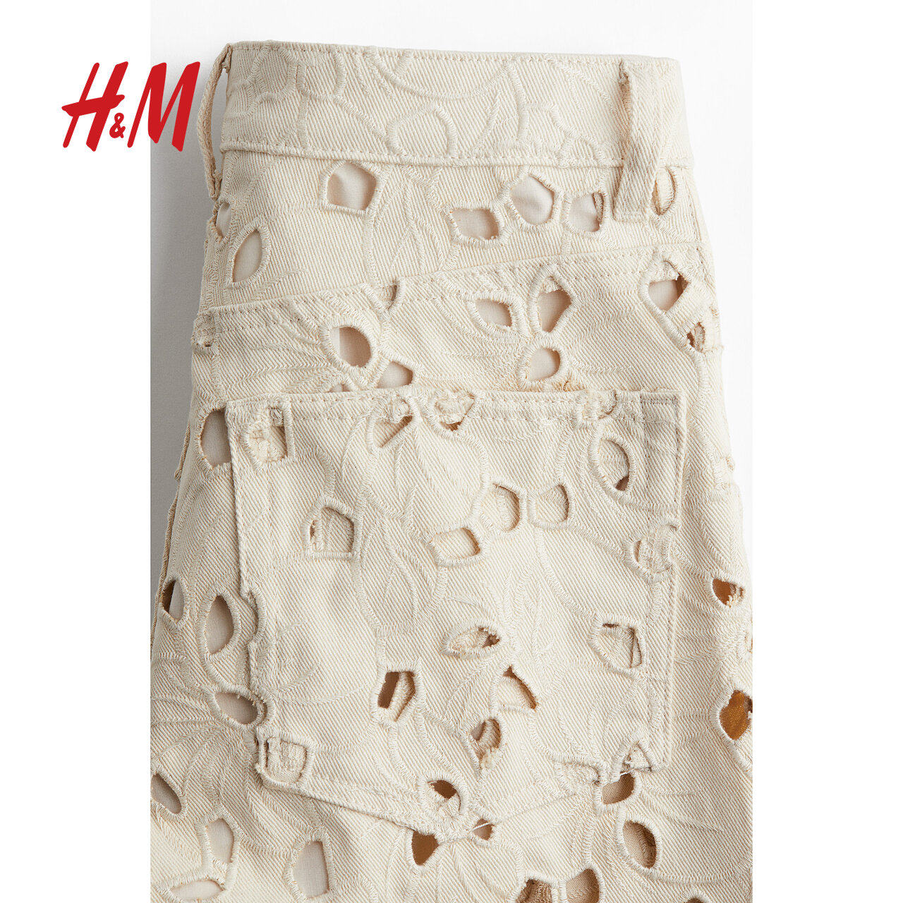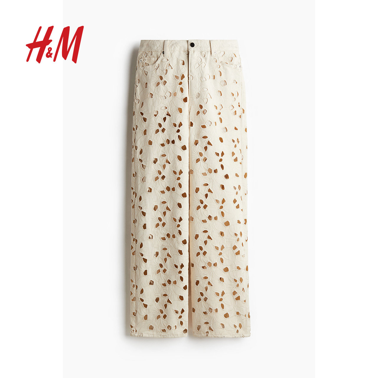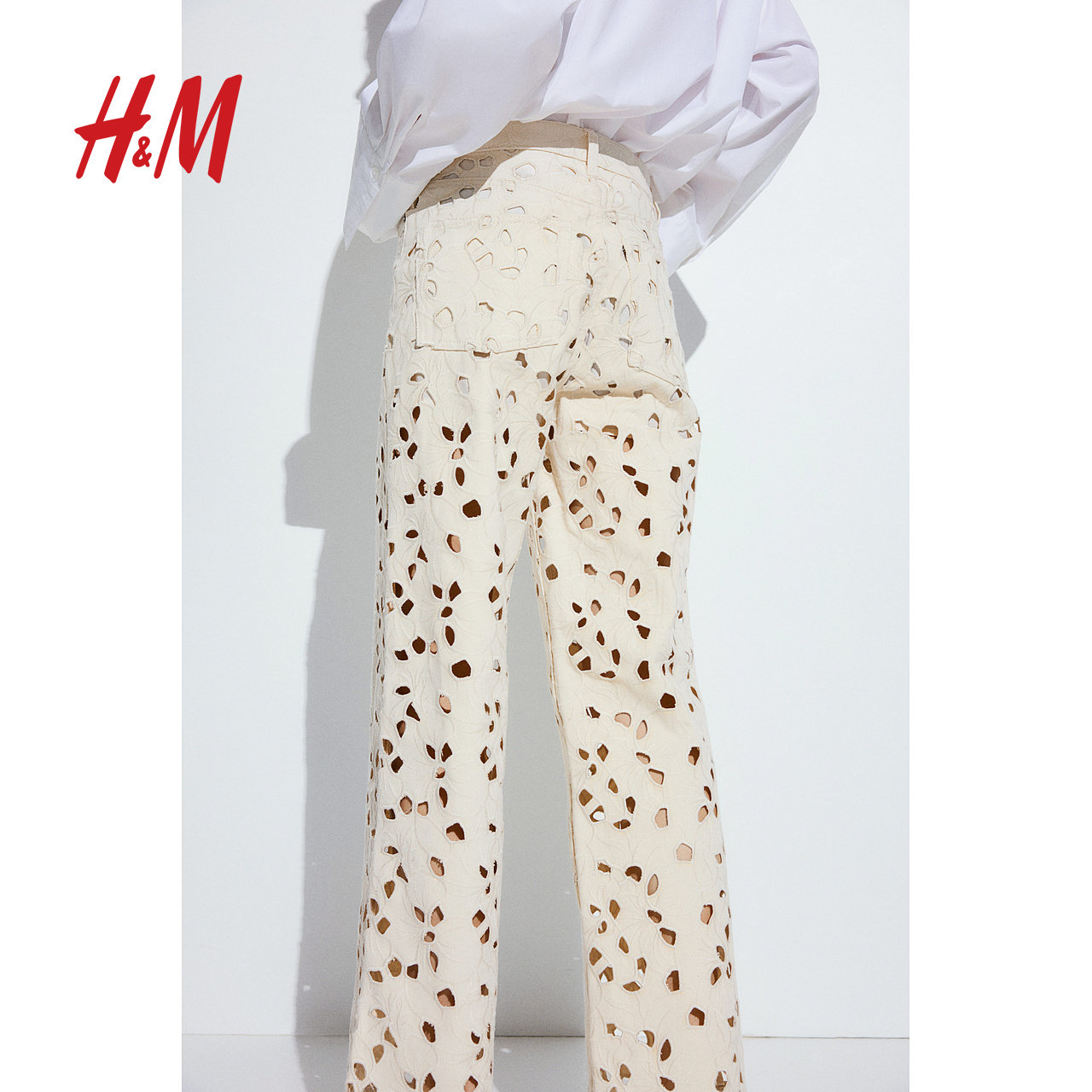 HM女装牛仔裤2025年新款刺绣牛仔裤时尚镂空设计潮流裤1275791