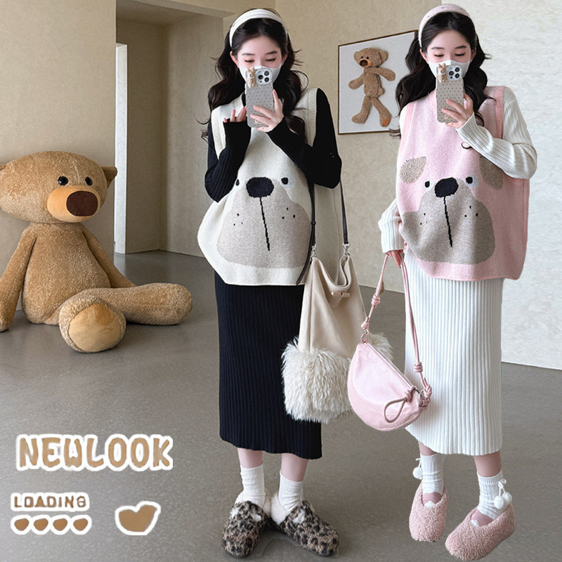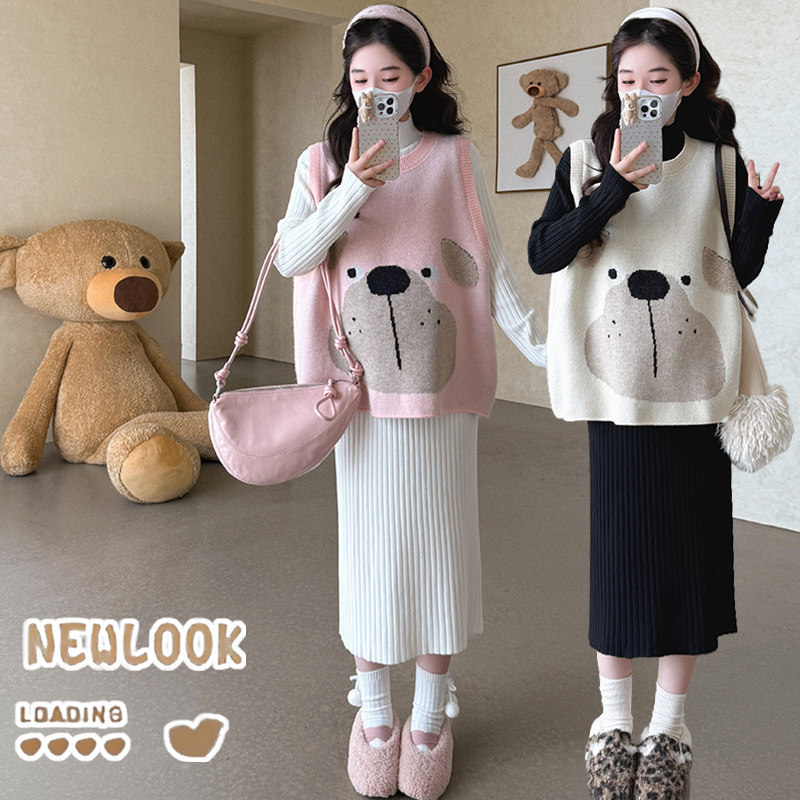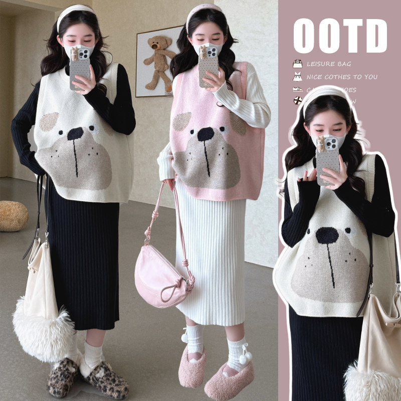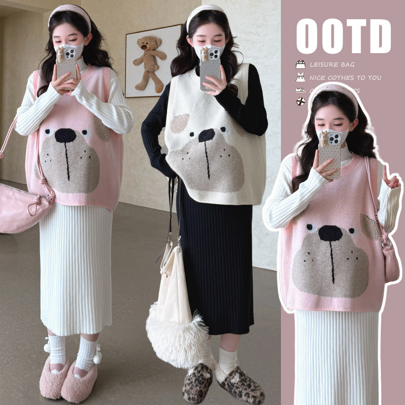 婧麒孕妇装冬装小狗卡通孕妇连衣裙孕期新款针织打底孕妇裙子高级