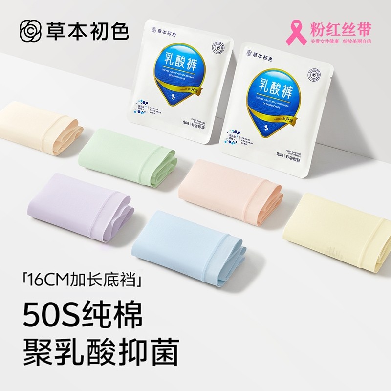 草本初色内裤女2025新款聚乳酸抗菌中腰三角裤少女生无痕高腰收腹
