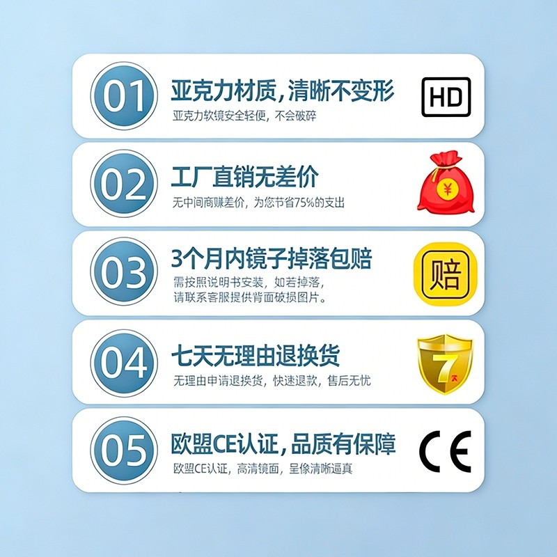 衣柜软镜子贴墙自粘穿衣镜内装隐形亚克力高清试衣镜子家用全身镜
