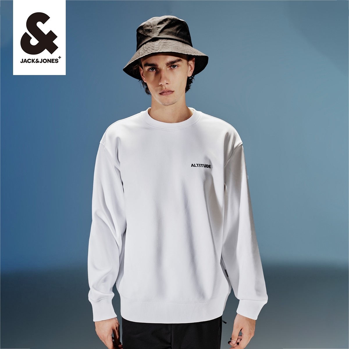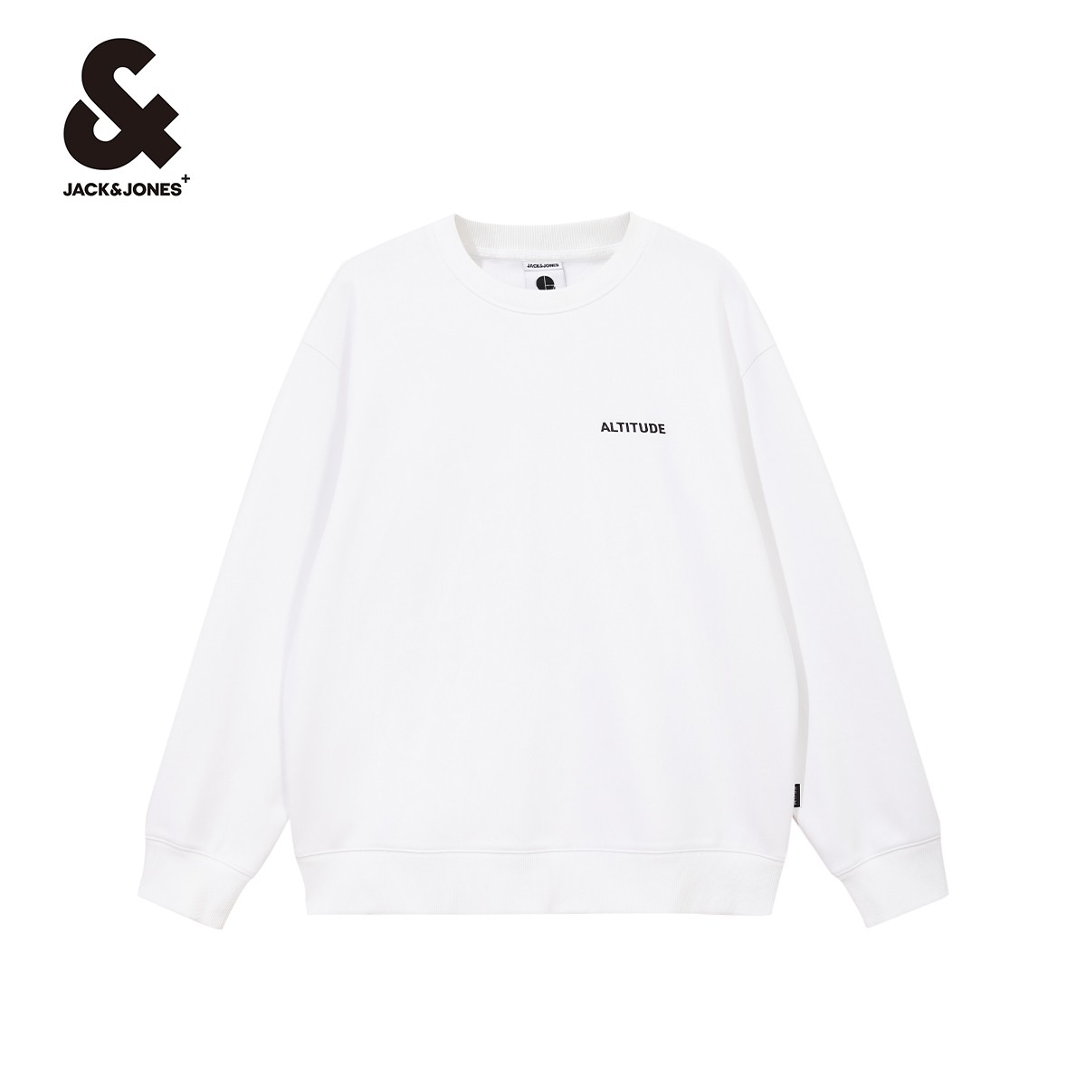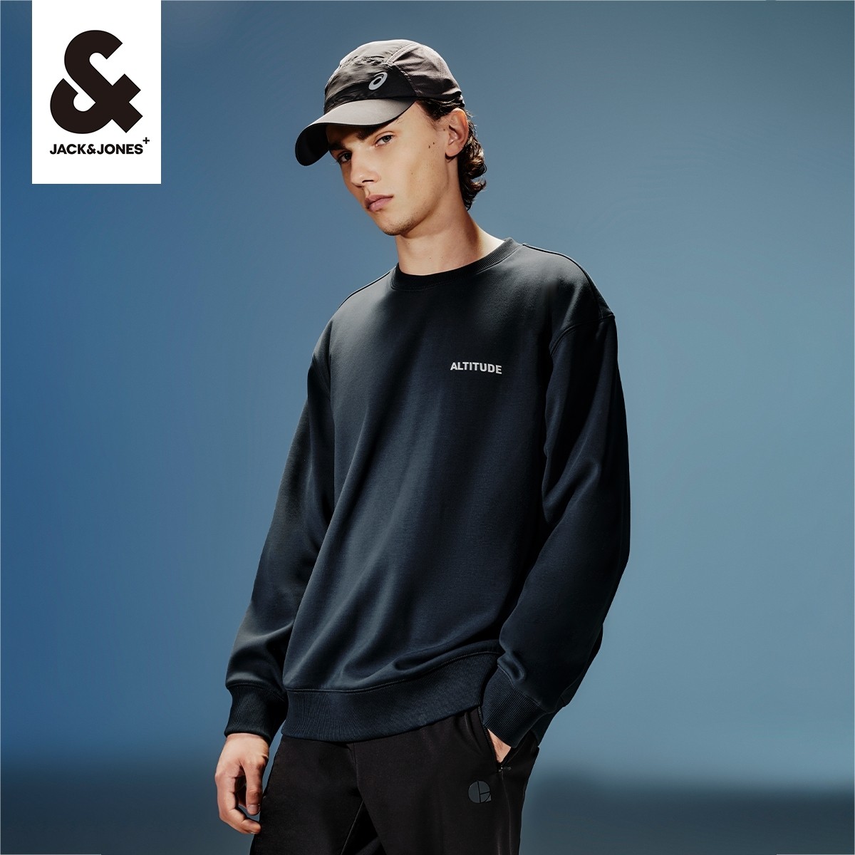 奥特莱斯杰克琼斯23年秋冬新款字母宽松圆领纯色加绒卫衣上衣男装