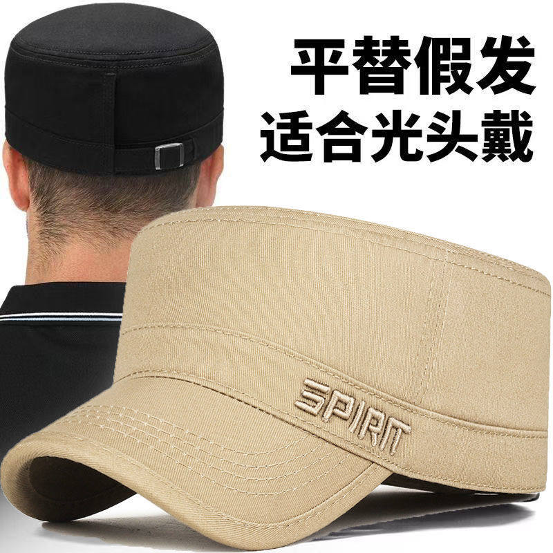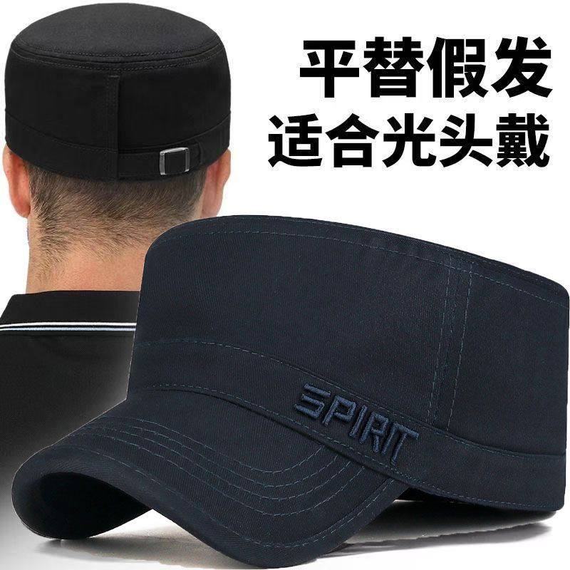 新款男士户外平顶帽子休闲百搭春秋光头中老年遮阳纯棉封口鸭舌帽