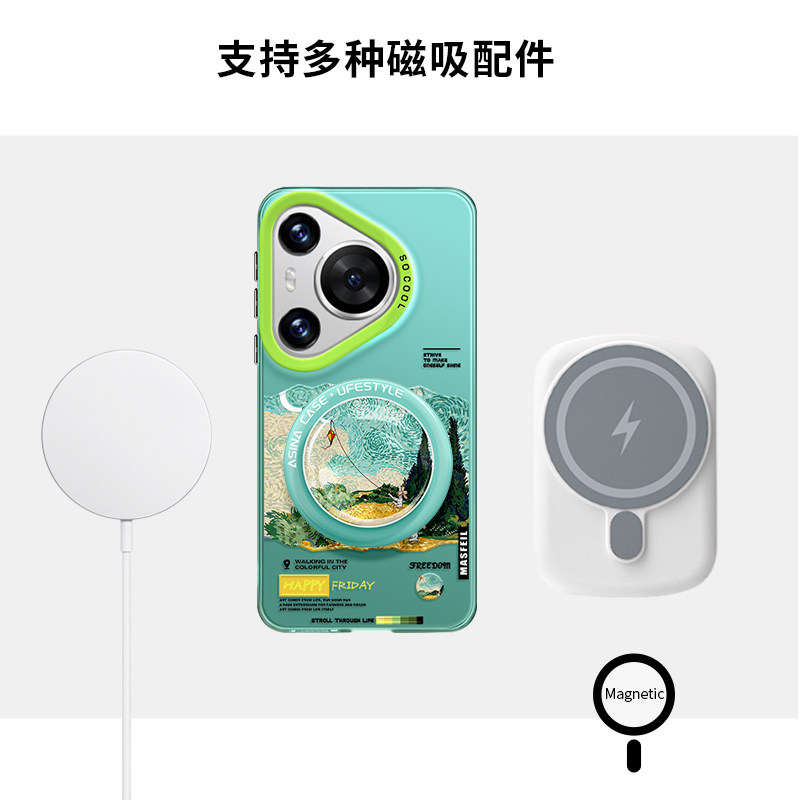MASFEIL × 放风筝适用华为Pura80手机壳磁吸p70/p60pro新款小众梵高p50高级感p40带支架全包创意套女Ultra