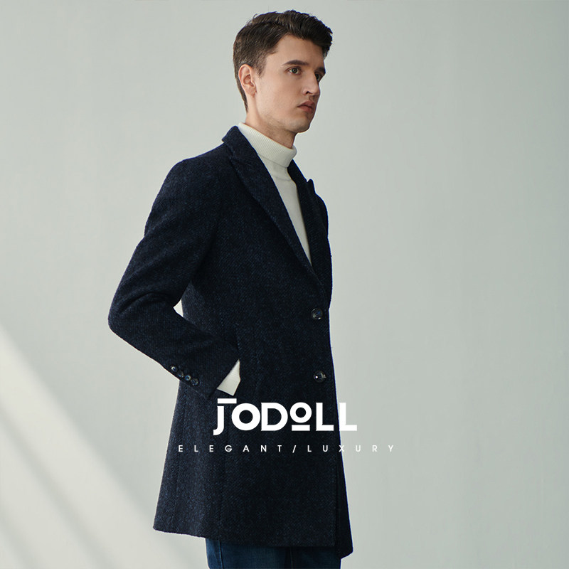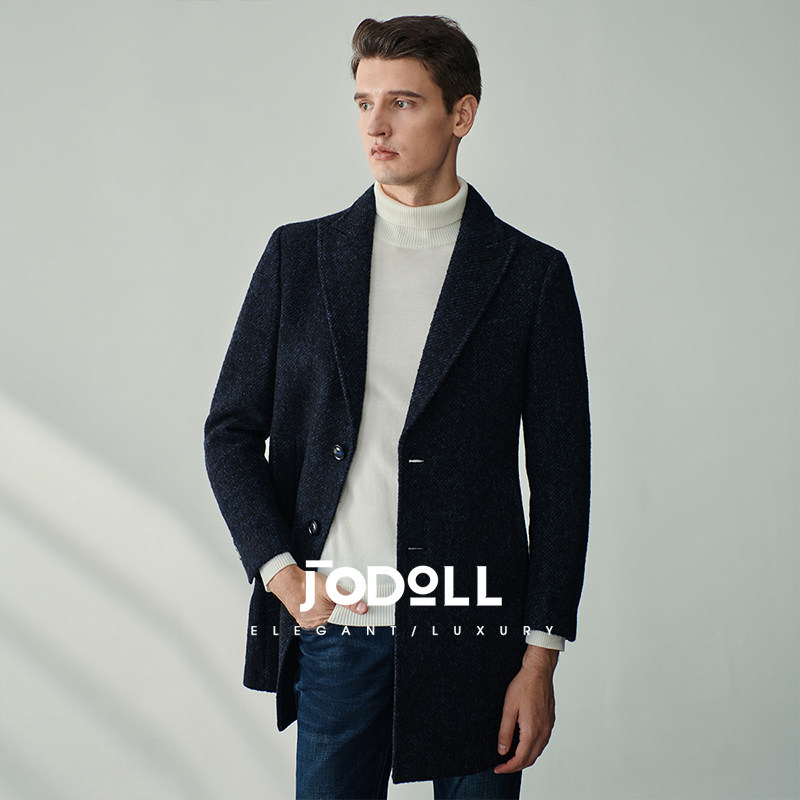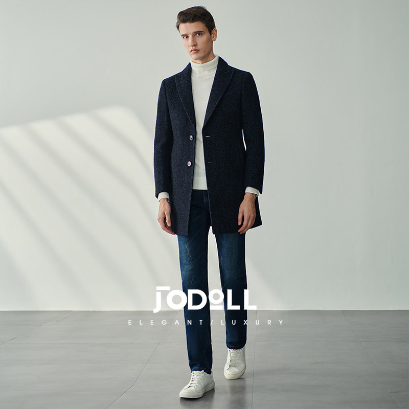 JODOLL乔顿冬季男毛呢大衣潮流帅气修身商务休闲中长款绵羊毛外套
