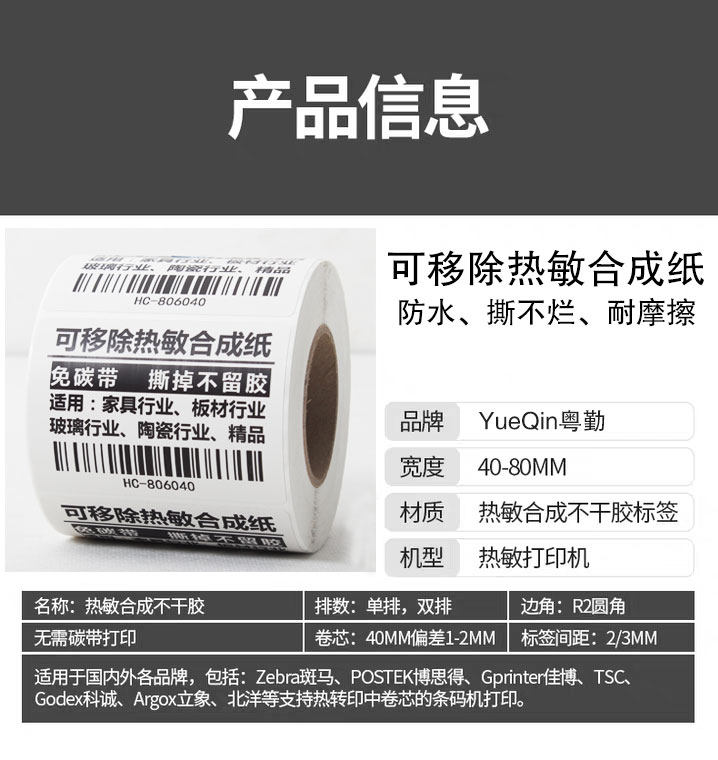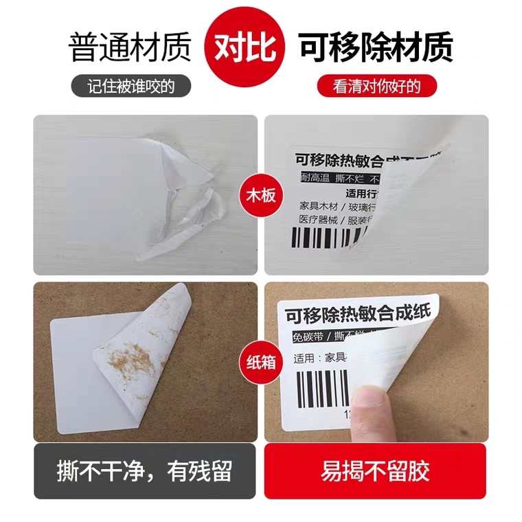可移除热敏标签纸防水撕不烂家具板材玻璃全屋定制生鲜冷链不干胶