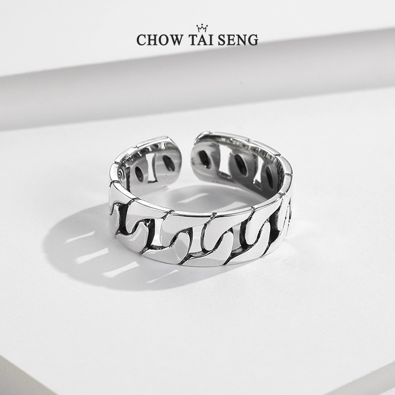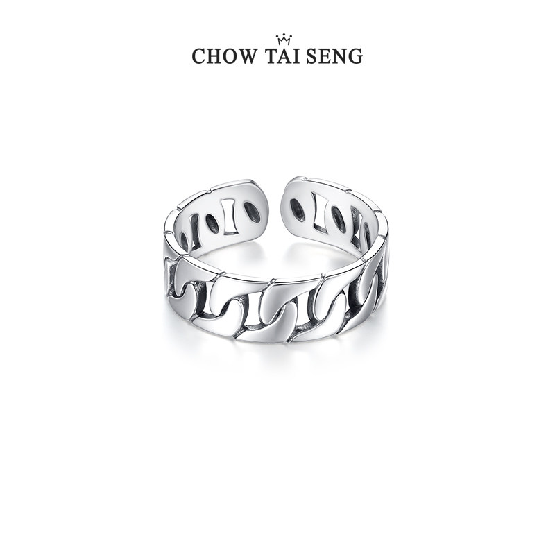 周大生S925银戒素圈戒指男女款时尚个性活口食指戒生日礼物送男友