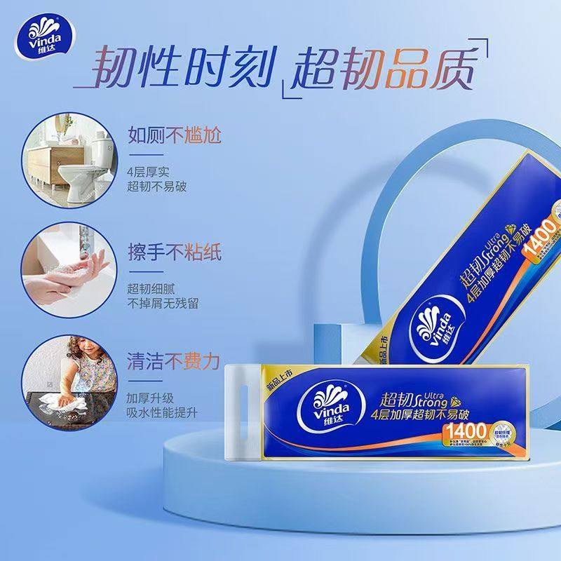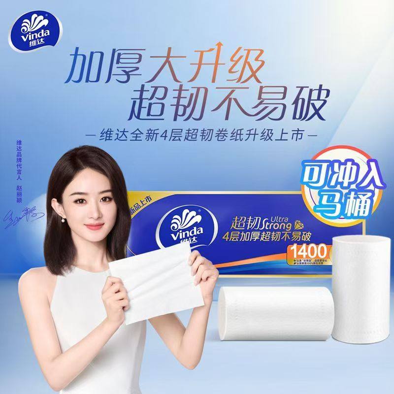 【孙颖莎推荐】维达卷纸蓝色经典卫生纸巾四层家庭装有芯卷纸厕所