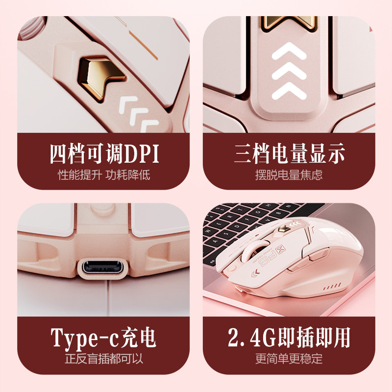 英菲克F9机甲版无线鼠标可充电无声静音电竞游戏笔记本通用typec