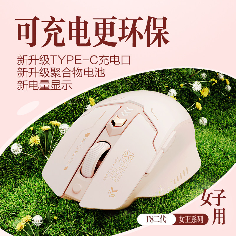 英菲克F8二代无线鼠标可充电无声静音Typec办公笔记本电脑女生usb