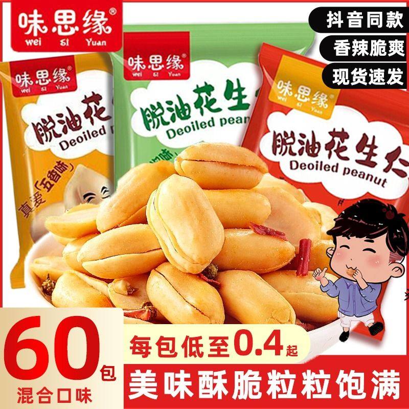 味思缘脱油花生米五香花椒味小包装下酒小菜去油花生碎网红小零食