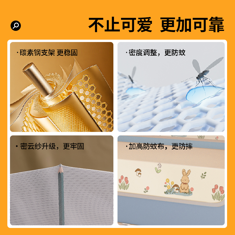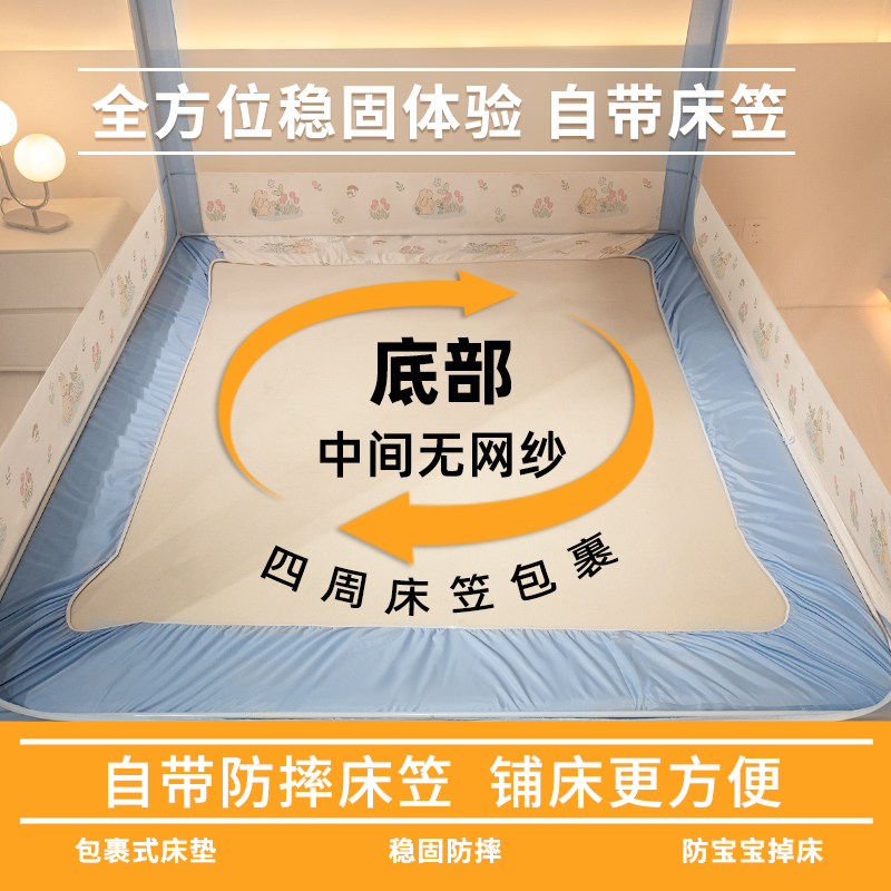 丸丫V2防摔蚊帐婴儿2025新款专用儿童纹帐家用卧室防掉床全底全罩