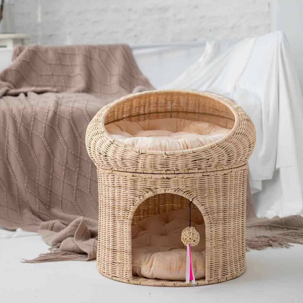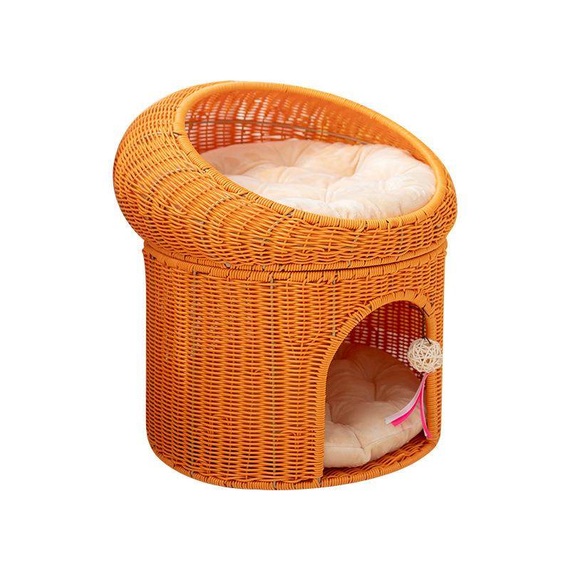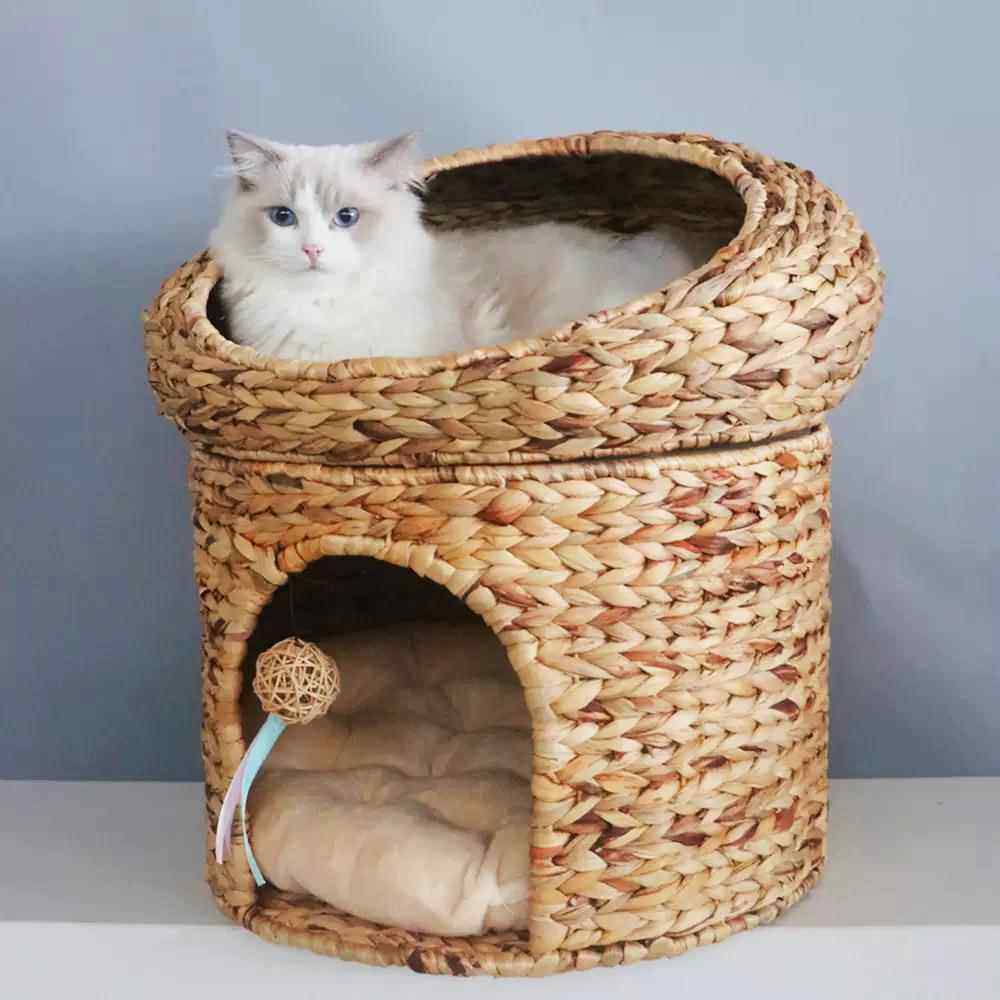 猫咪夏季清凉猫窝透气藤编房子幼猫窝四季通用双层半封闭式宠物窝