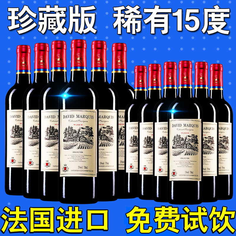 法国进口赤霞珠红酒买送15度正品高档干红葡萄酒整箱特价珍藏国产