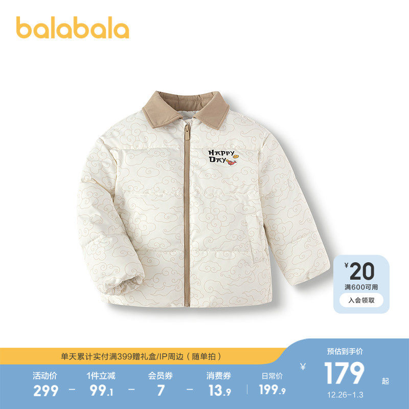 巴拉巴拉童装儿童棉服男童春装撞色翻领国风外套祥云印花拜年服潮