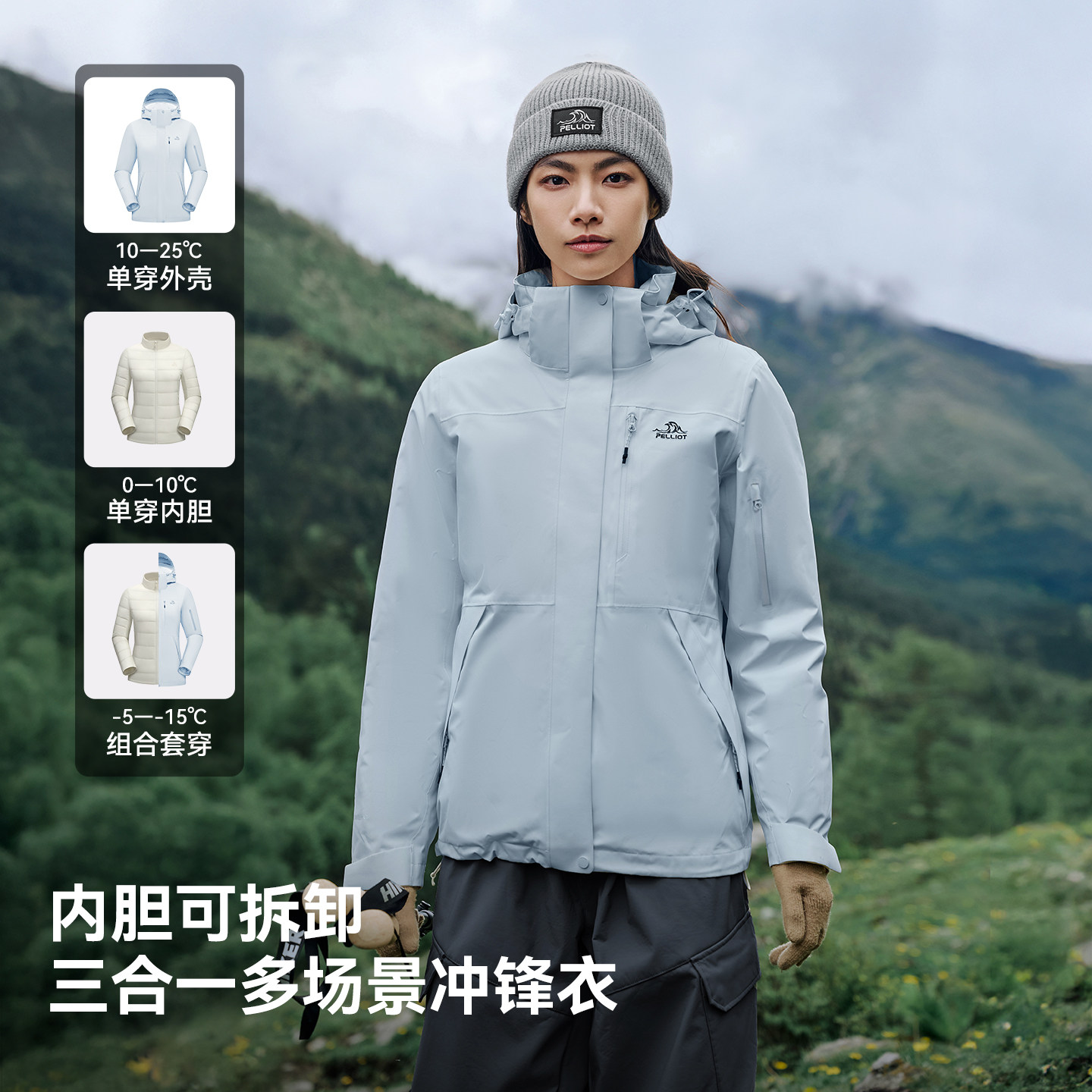 【山行】伯希和户外冲锋衣女三合一抓绒内胆冬季防风防雨登山服男