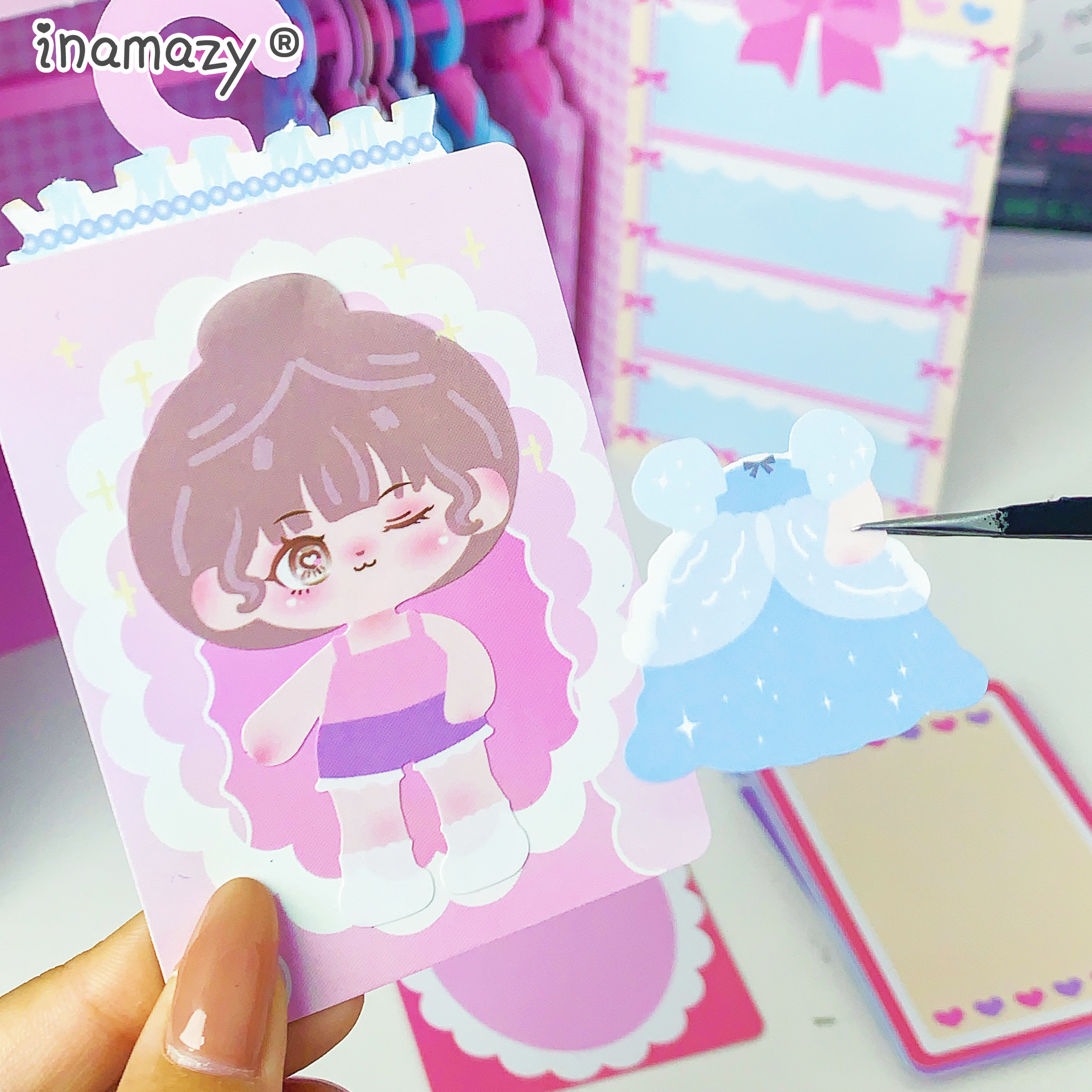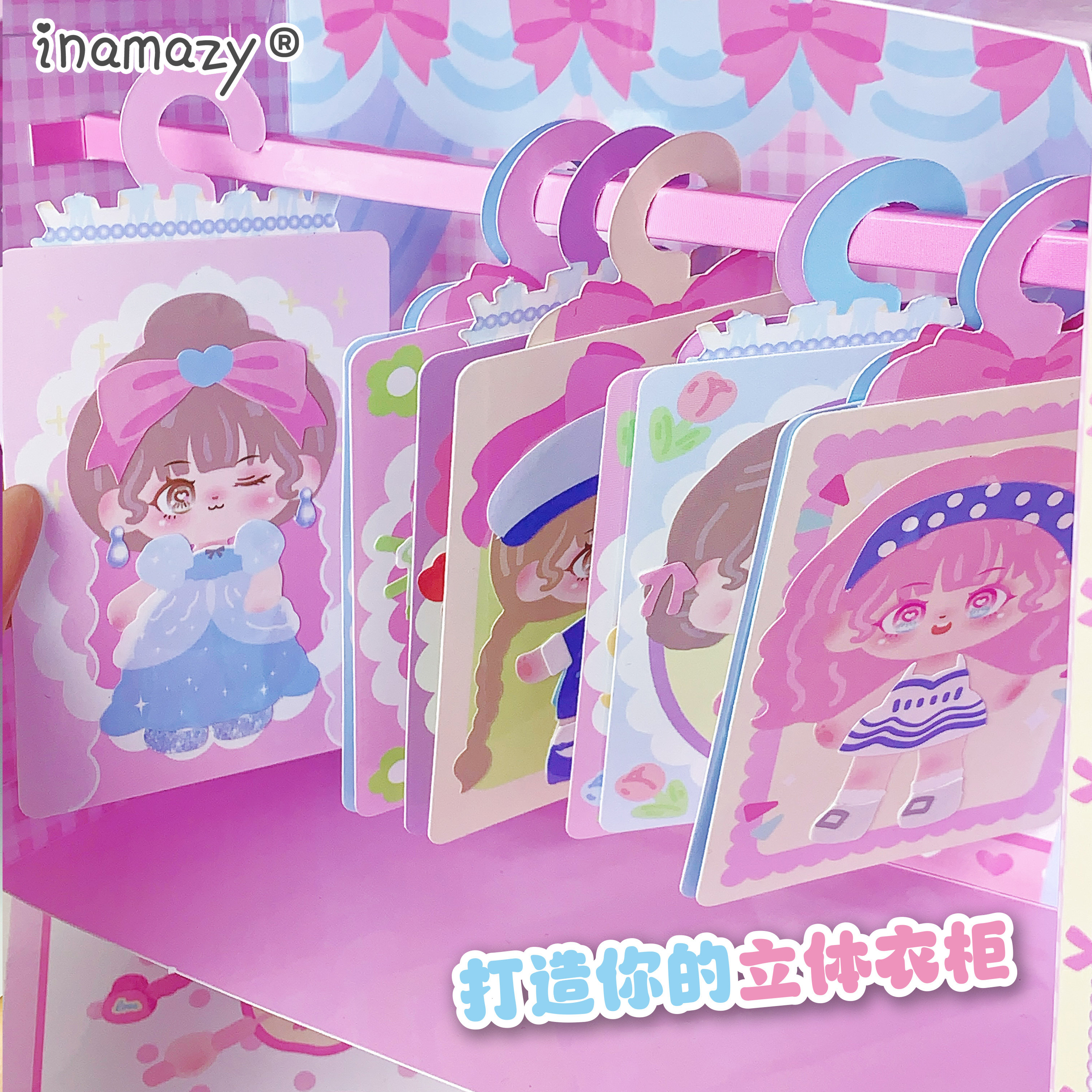 Inamazy酥梨酱DIY小手工儿童女孩玩具换装贴纸套装立体免剪裁安静书可爱少女手帐工具咕卡手工书衣橱素材主题
