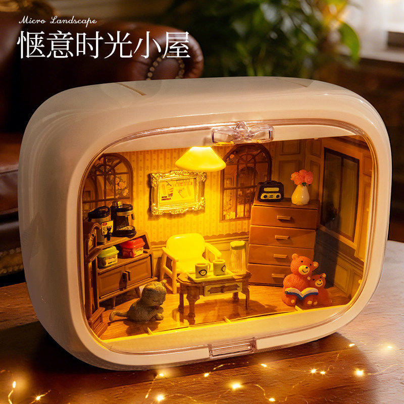 手工diy拼装微缩模型屋玩具太空舱带灯房子透明摆件礼物花束实用