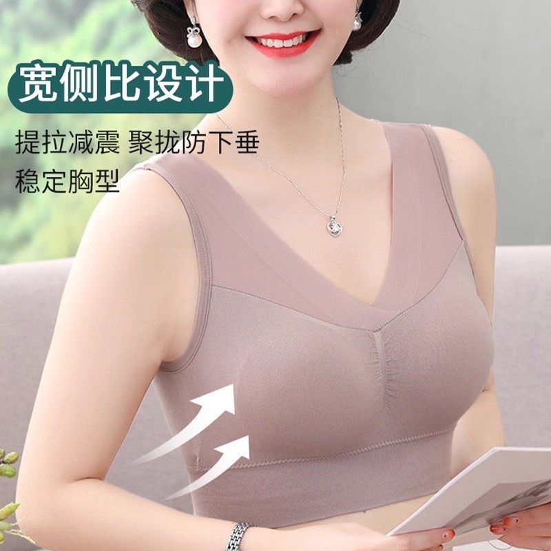 妈妈无钢圈背心式内衣女士聚拢防下垂胸罩中老年大码运动无痕文胸
