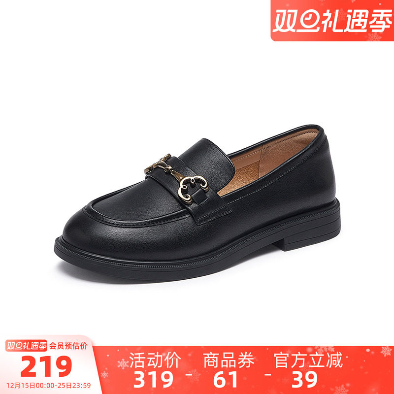 骆驼女鞋2025秋季新款真皮英伦风小皮鞋休闲通勤低跟单鞋女乐福鞋