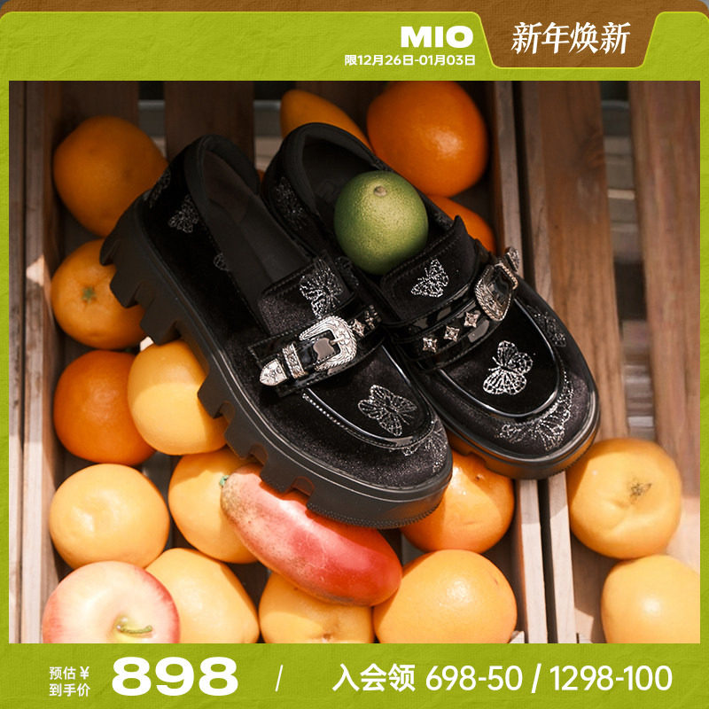 MIO米奥高跟乐福鞋女2025秋新款黑色一脚蹬英伦风厚底增高jk单鞋