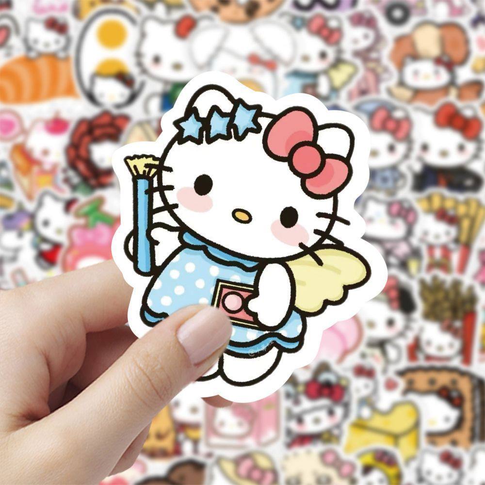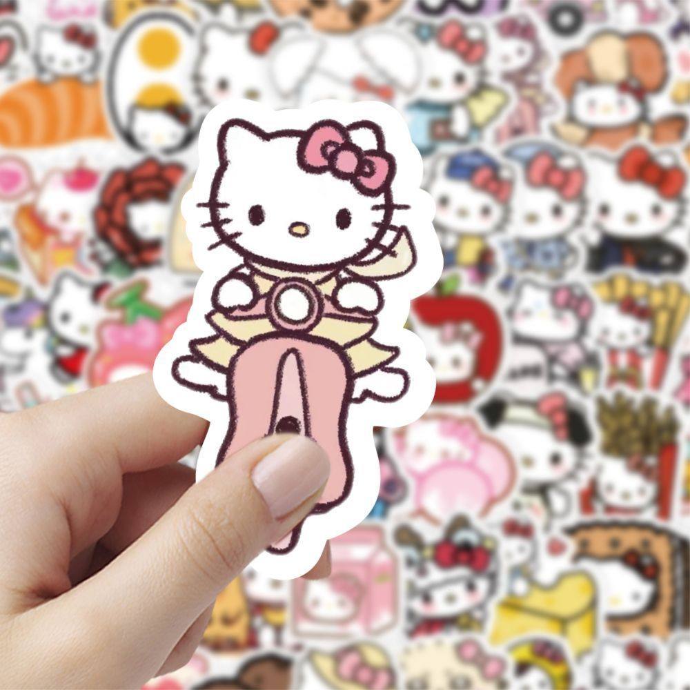 400张Hello哈喽小猫贴纸萌系可爱卡通行李箱水杯防水不干胶贴画