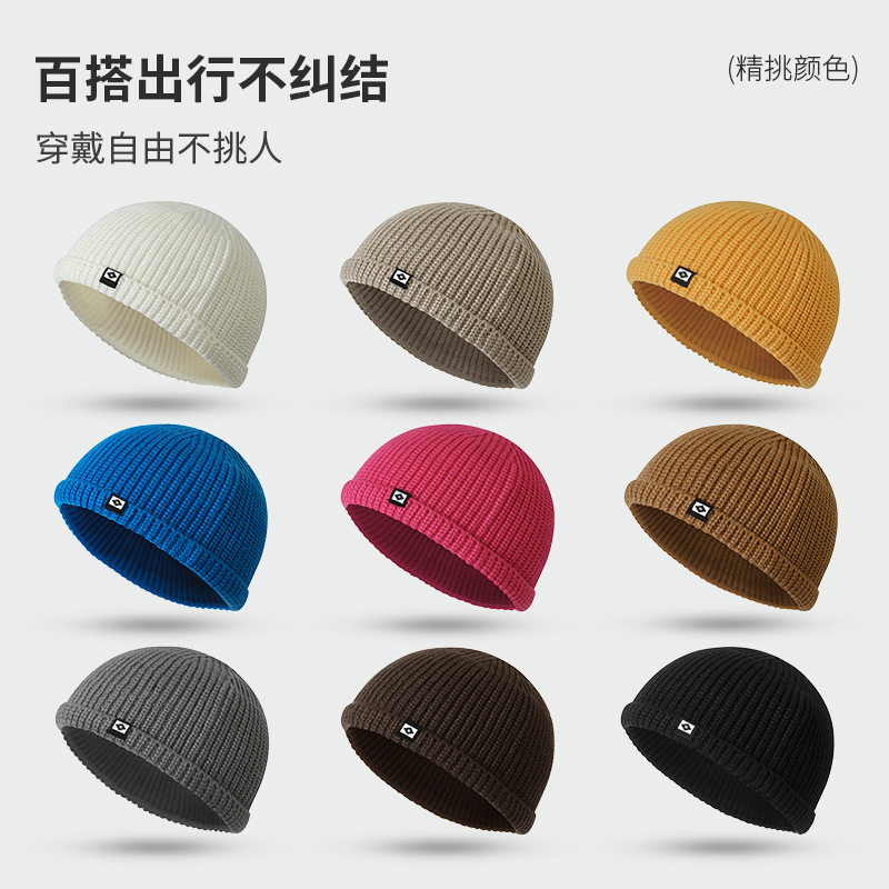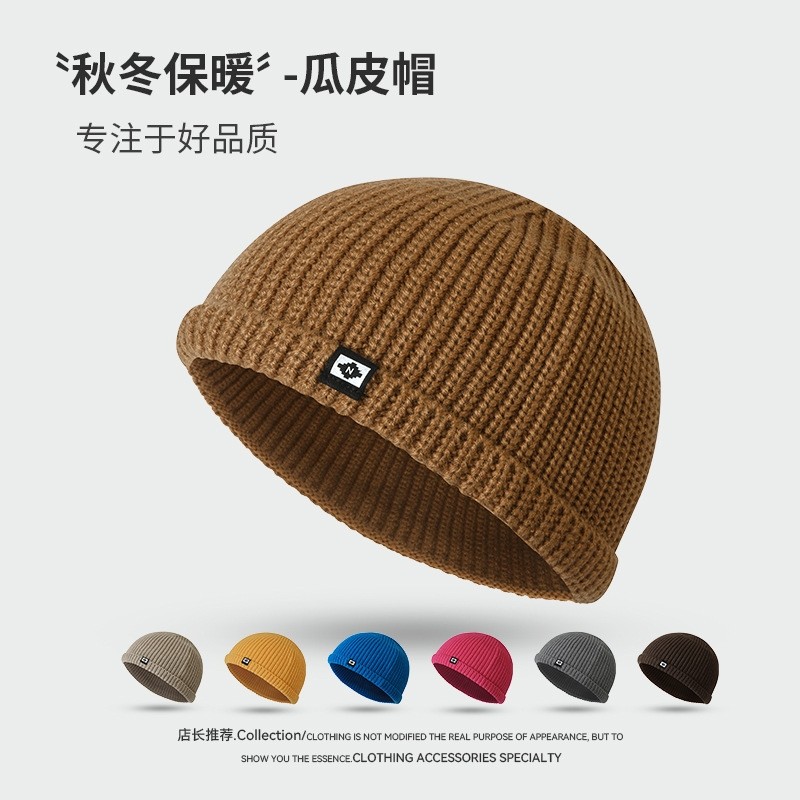 跨境贴布小标毛线帽休闲百搭短檐街头嘻哈男秋冬季韩版潮瓜皮帽子