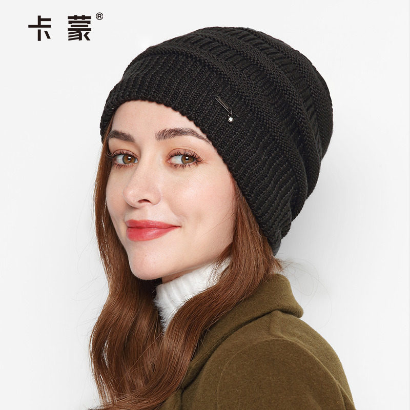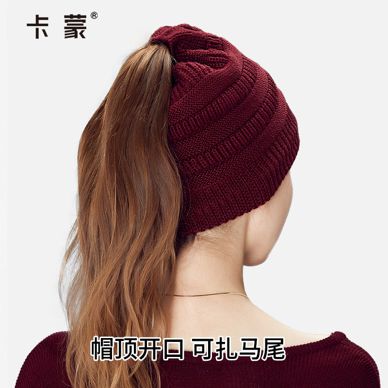 卡蒙户外跑步可扎辫子护耳帽子冬帽休闲百搭空顶针织帽冬女潮嘻哈