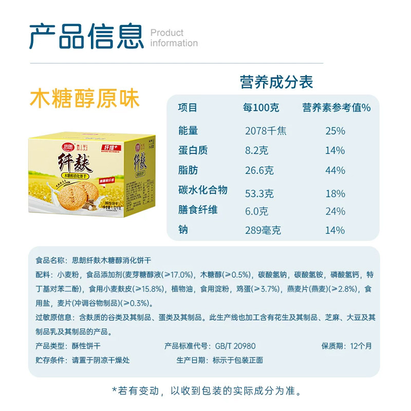 思朗纤麸粗粮消化饼干早餐木糖醇饼干五谷杂粮代餐零食整箱