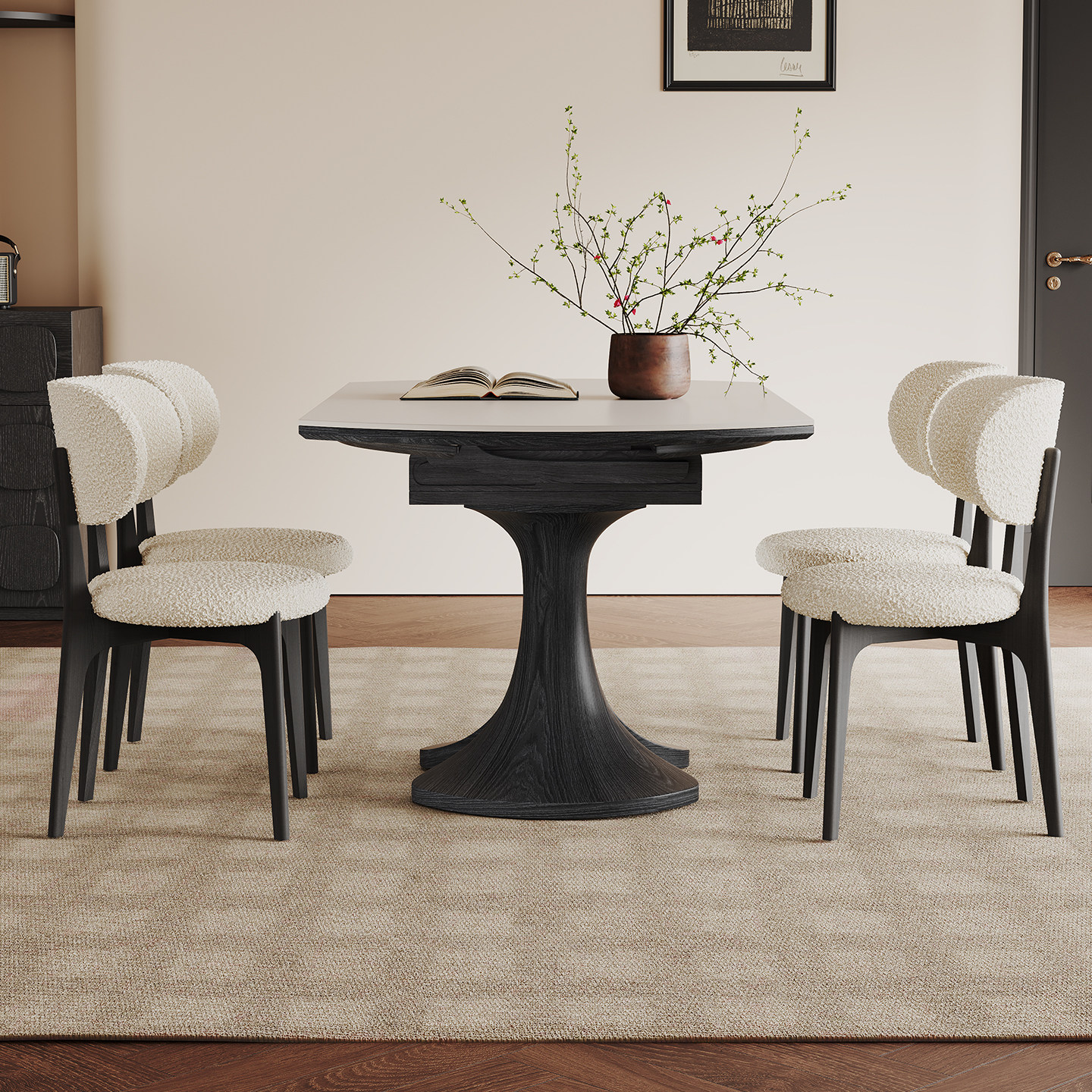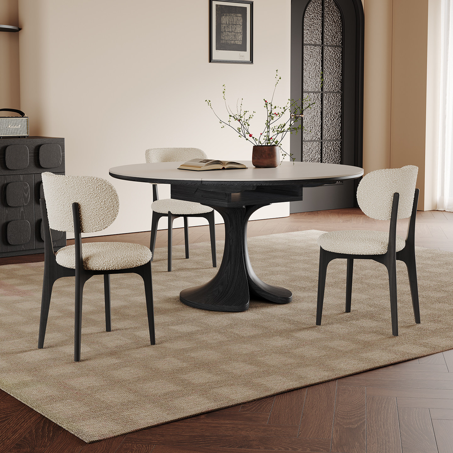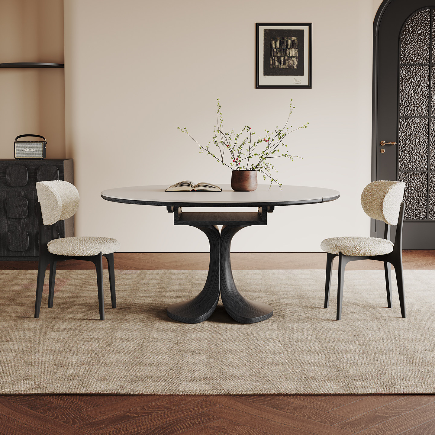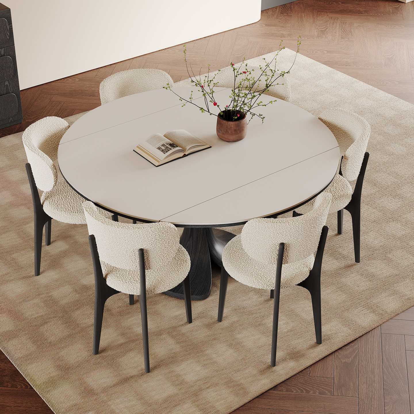 岩板伸缩餐桌圆形家用小户型现代意式轻奢高级感方圆两用实木餐桌