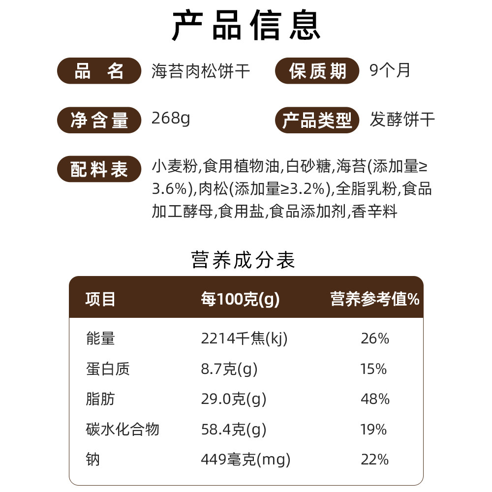 金语海苔肉松饼干268g休闲零食小吃下午茶点心早餐代餐独立小包装