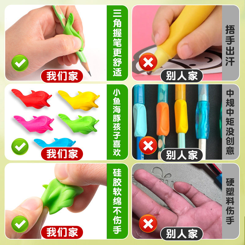 小鱼海豚握笔器矫正器幼儿园儿童初学者小学生姿势控笔训练铅笔硅胶握一年级拿笔控笔日本柔软手指保护套专用
