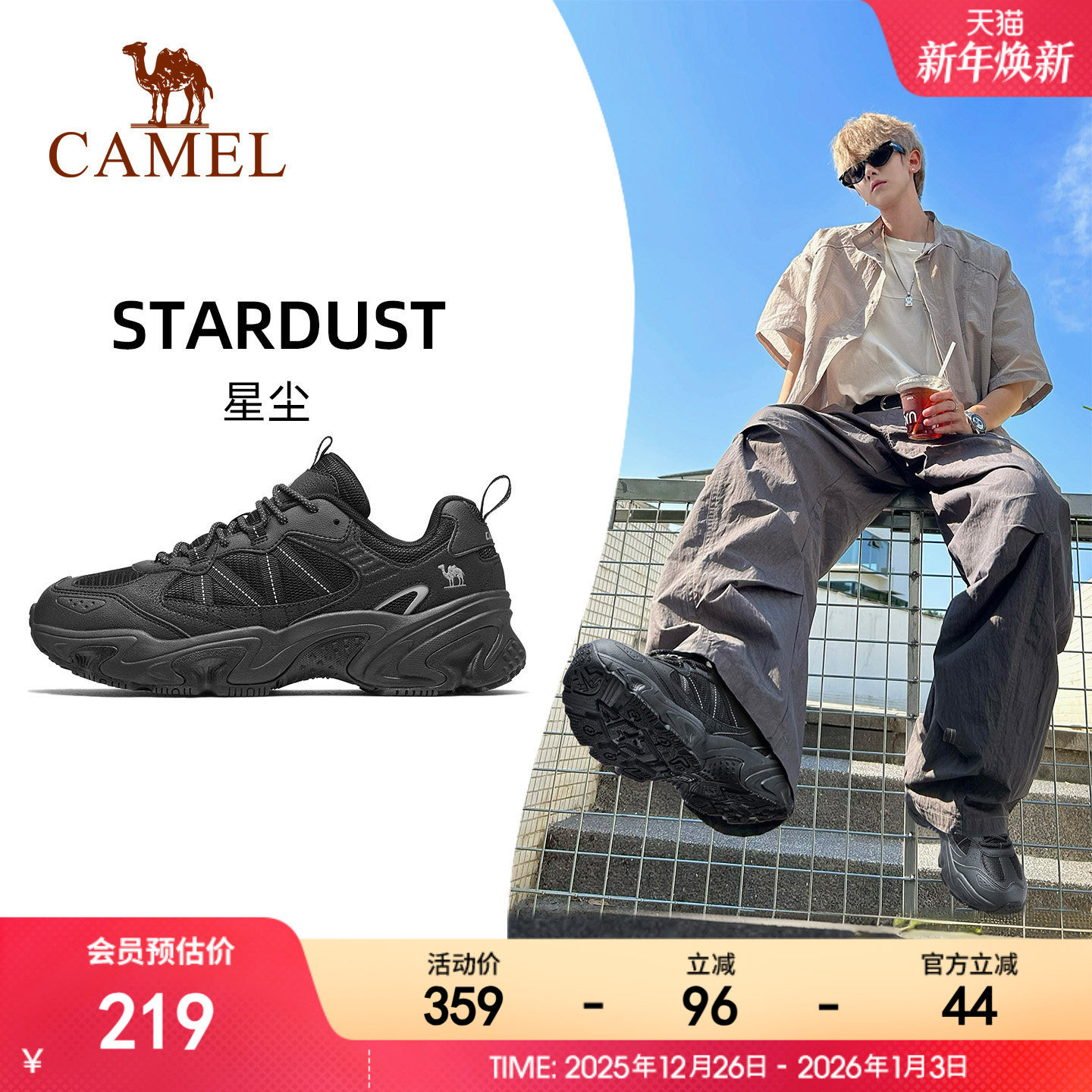 骆驼星尘运动鞋男2025秋季新款黑色复古休闲鞋防滑厚底增高老爹鞋