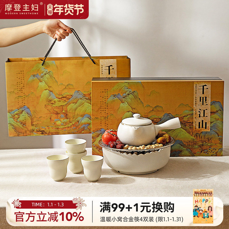 摩登主妇千里江山围炉煮茶套装室内围聚煮茶炉茶具泡茶壶乔迁礼物
