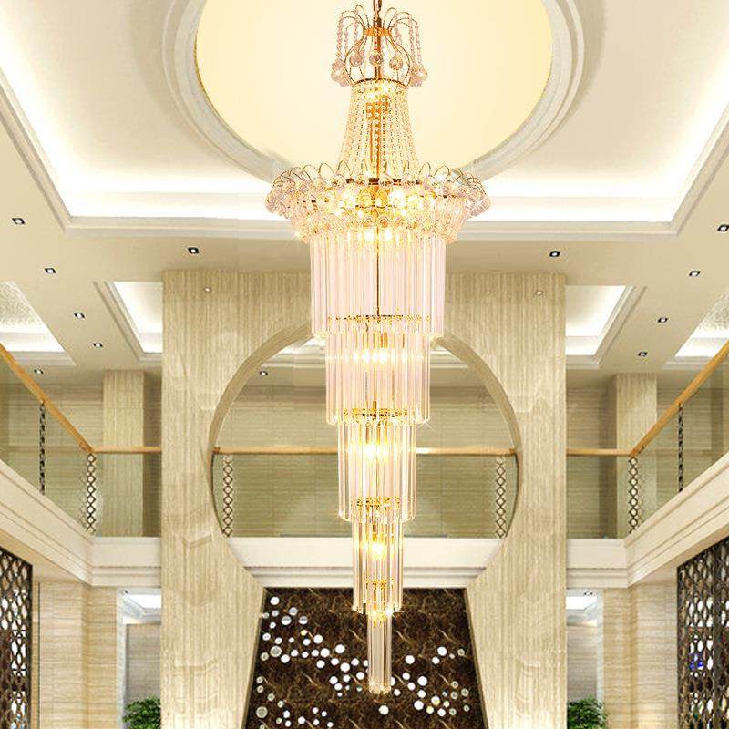 金色现代楼梯灯长吊灯别墅复式灯水晶吊灯客厅吊灯具灯饰