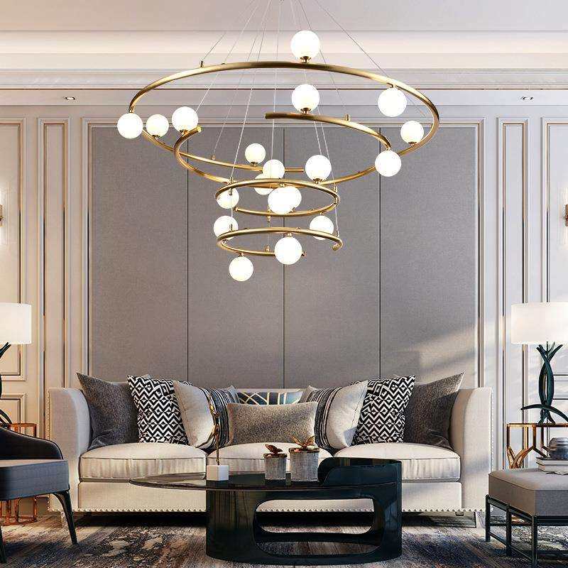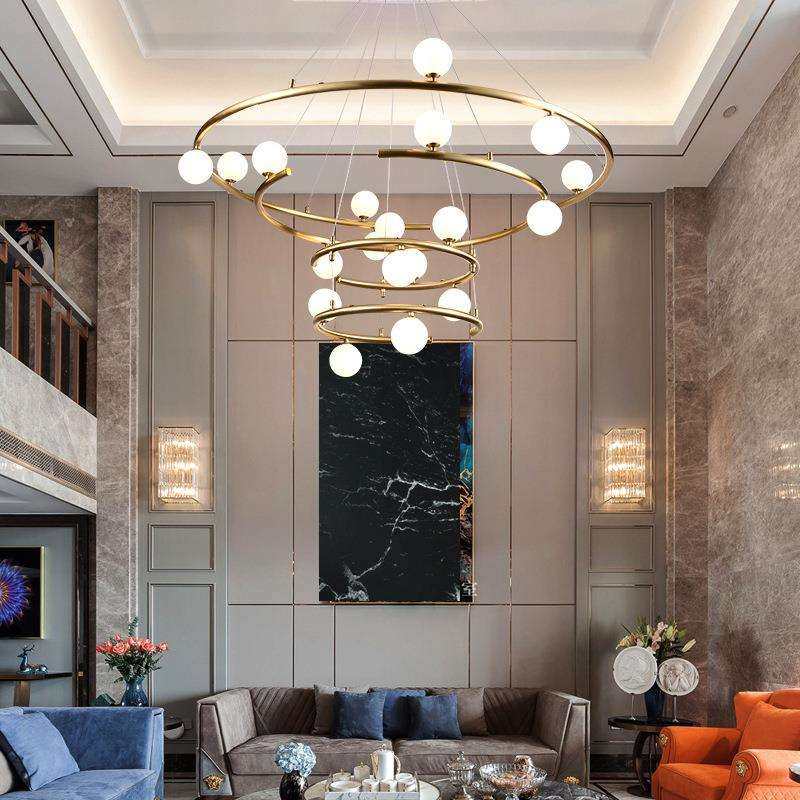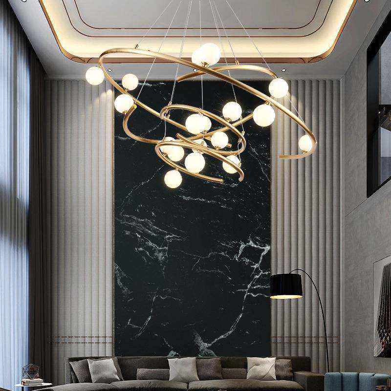 复式楼大吊灯现代简约创意挑高跃层楼梯螺旋转轻奢别墅客厅主灯具