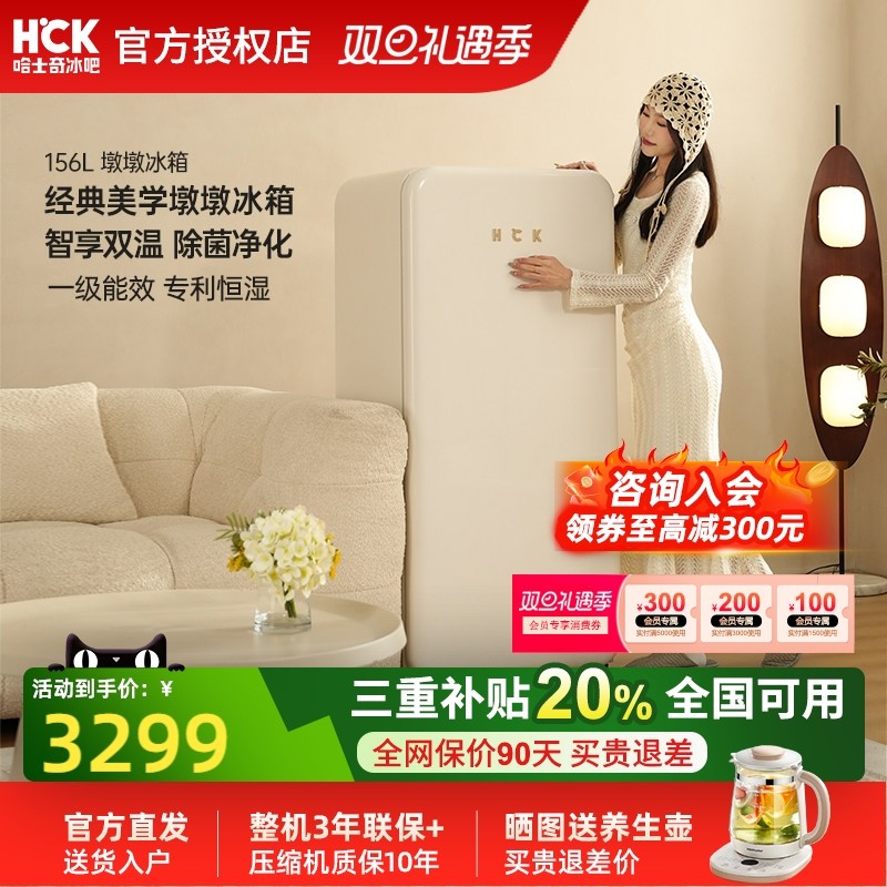 HCK哈士奇墩墩冰箱复古网红办公室高颜值家用客厅一级能效156L
