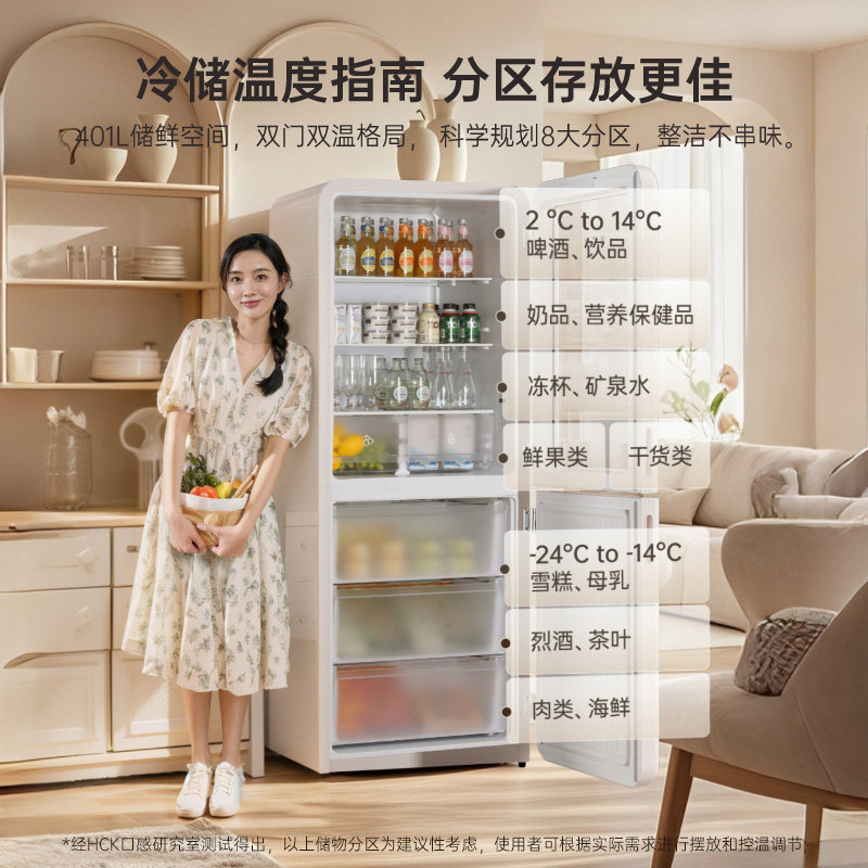 HCK哈士奇401L墩墩吧Max冷冻冷藏双开两门家用复古冰箱一级能耗