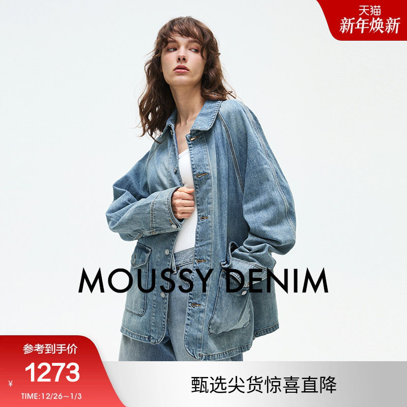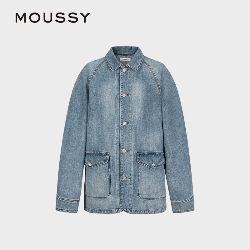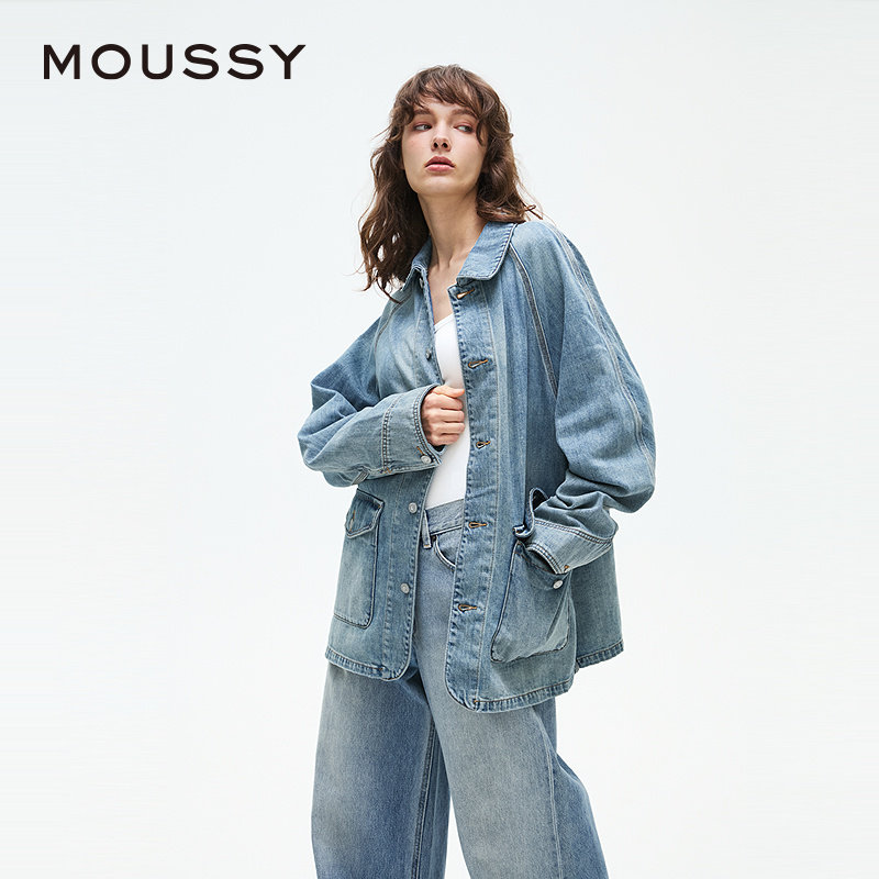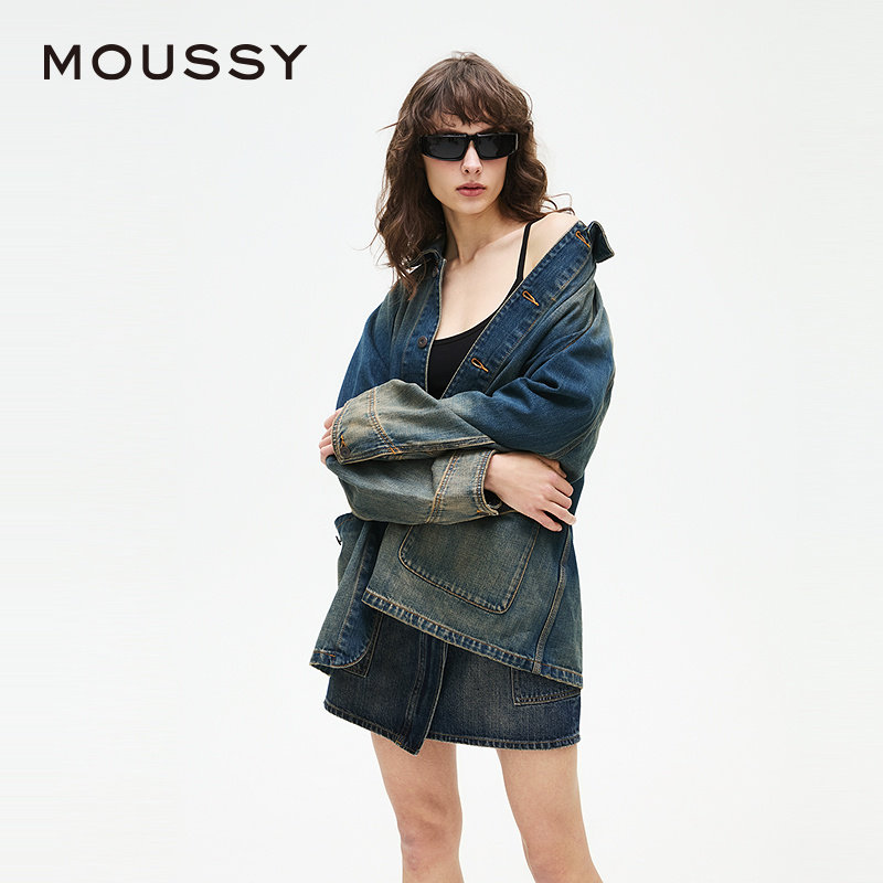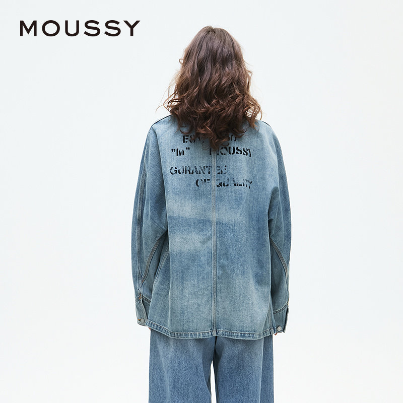 MOUSSY 2025春季新品复古水洗休闲宽松牛仔夹克外套010ISH11-2011