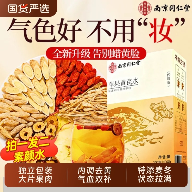 同仁堂苹果黄芪水红枣枸杞麦冬茶素颜水女人调理补气血养生花茶包