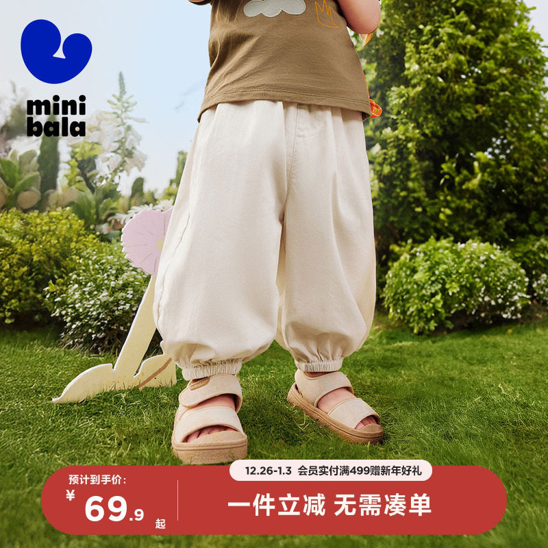 迷你巴拉巴拉男女童裤子春夏亲肤轻薄束口灯笼裤长裤儿童防蚊裤