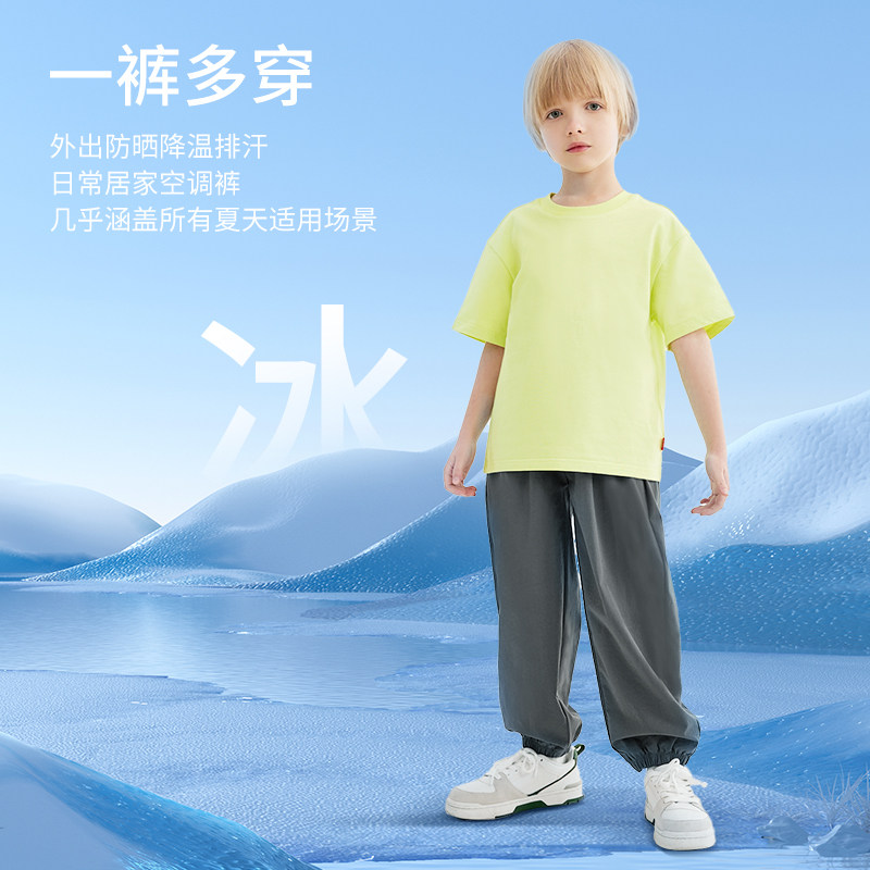 男童防蚊裤子夏季中大童2025新款男孩薄款冰丝潮儿童装运动速干裤