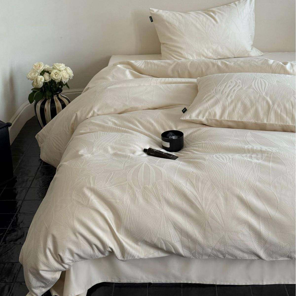 简约浮雕提花纯色长绒棉复古四件套全棉卧室床单被套裸睡可机洗