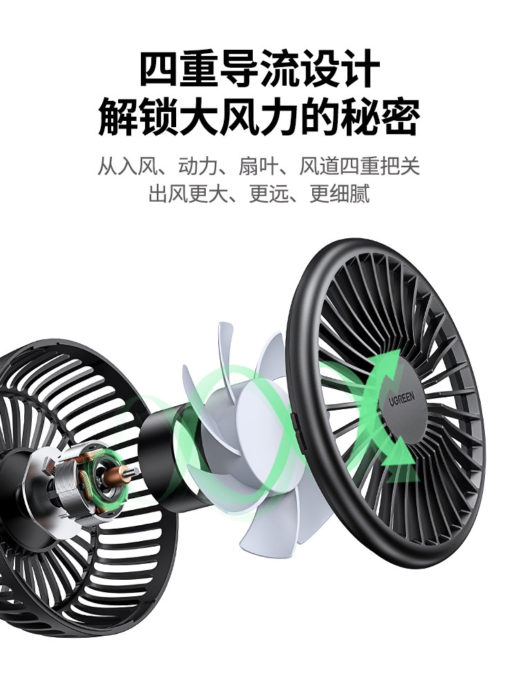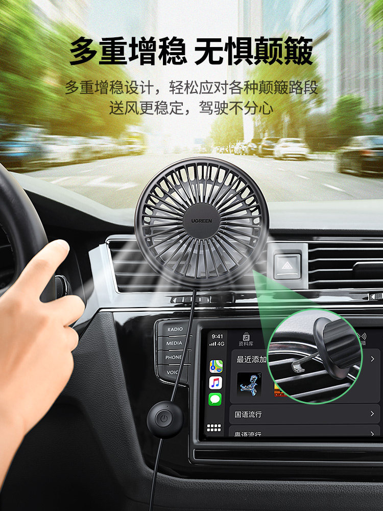 绿联车载风扇24V大货车汽车电风扇12V小型usb车用强风制冷降温
