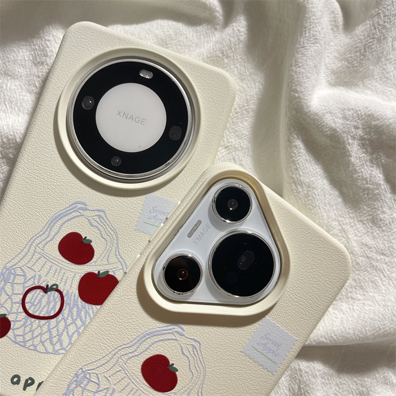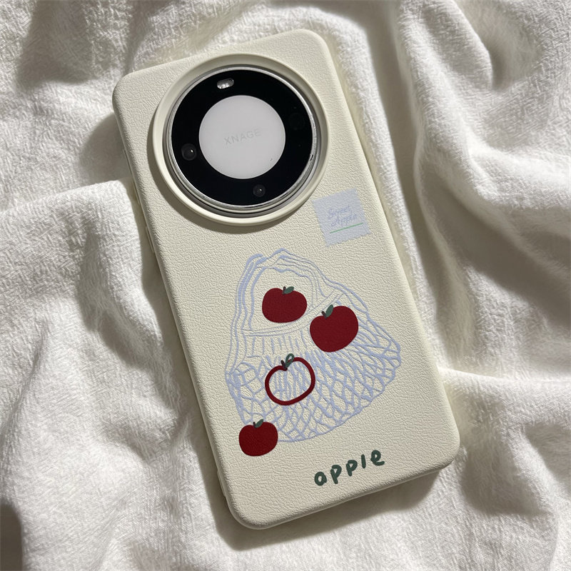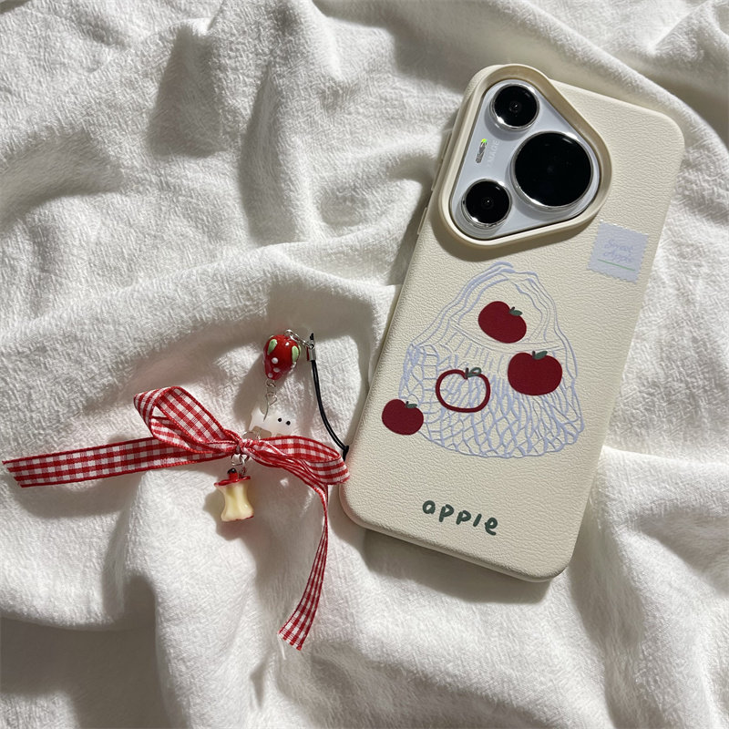 趣味创意袋子苹果插画适用华为mate60pro+手机壳pura80pro荔枝纹软壳pura70带挂件新款mate70pro日韩网红女款